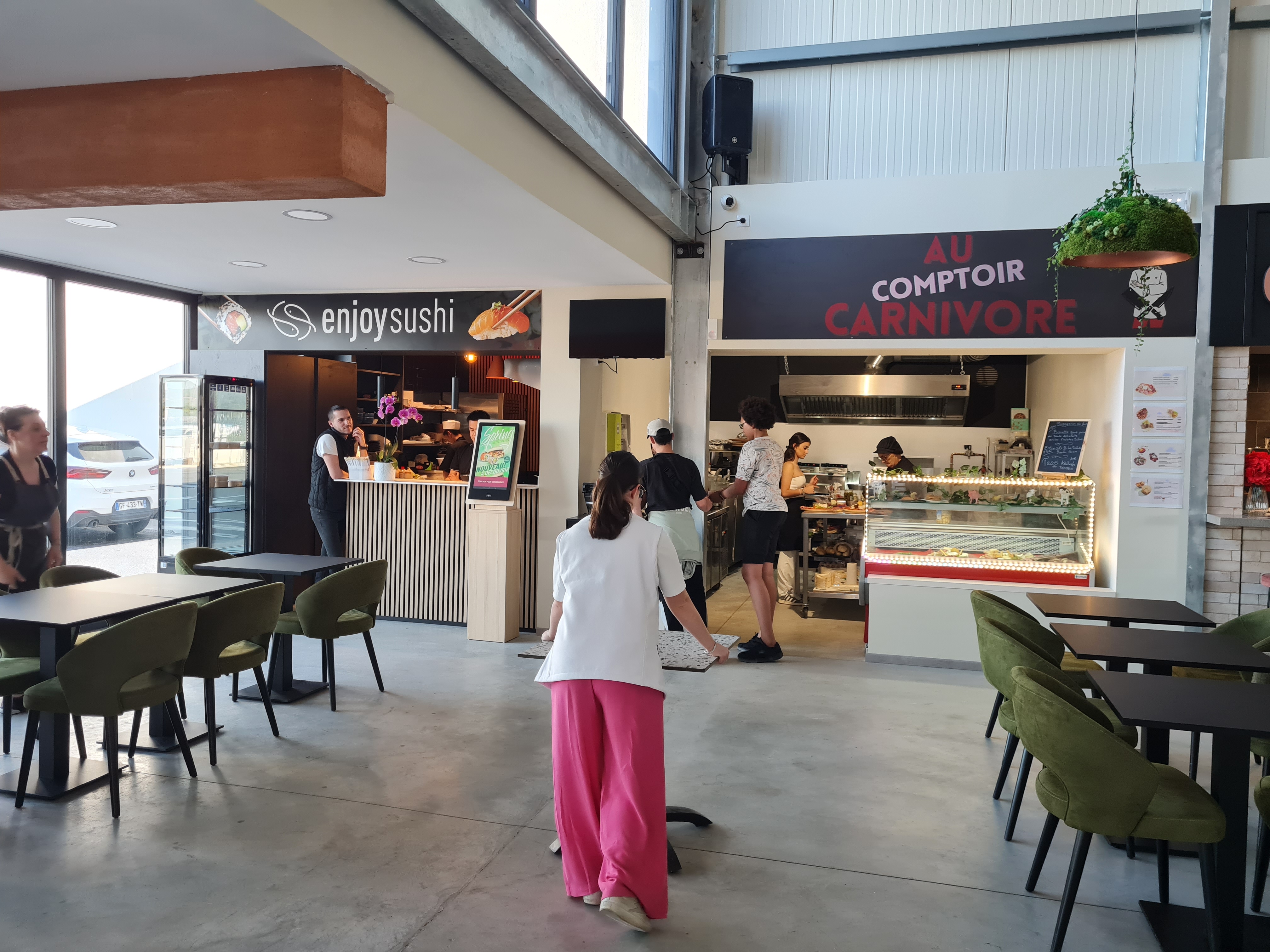 Le concept est vraiment bien, 8 corners avec cuisine au choix, dont 2 étaient malheureusement fermés lors de notre visite. Nous avons pris une salade italienne et des poulpes aux pommes de terre et nous y reviendrons pour goûter à d'autres spécialités, comme le couscous qui avait l'air très bon, ou la paëlla. L'aménagement intérieur est assez spacieux et 2 terrasses permettent de profiter de l'extérieur, même s'il s'agit d'une zone d'activité assez récente avec peu de végétation.
