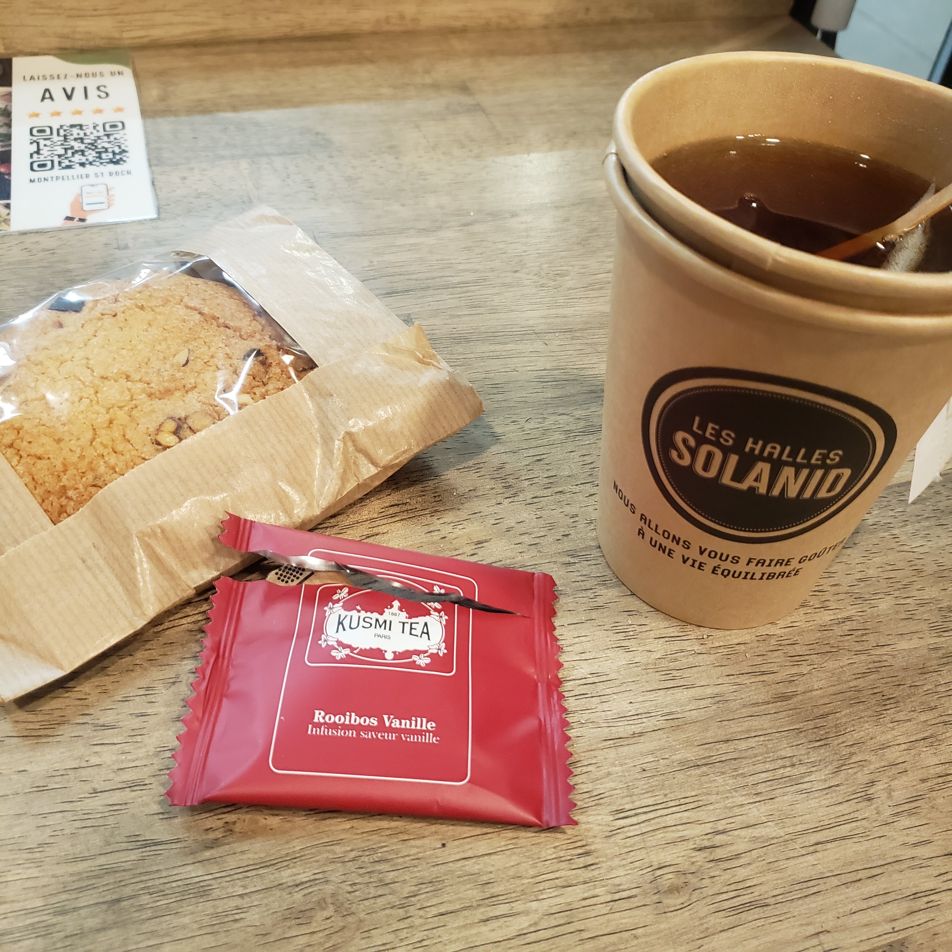Très mauvais café, sûrement mal préparé, qui suit d’un service très moyen, cookie très sec, on s’attend à mieux pour des produits bio, et cher. (Très bon croissant cela dit)