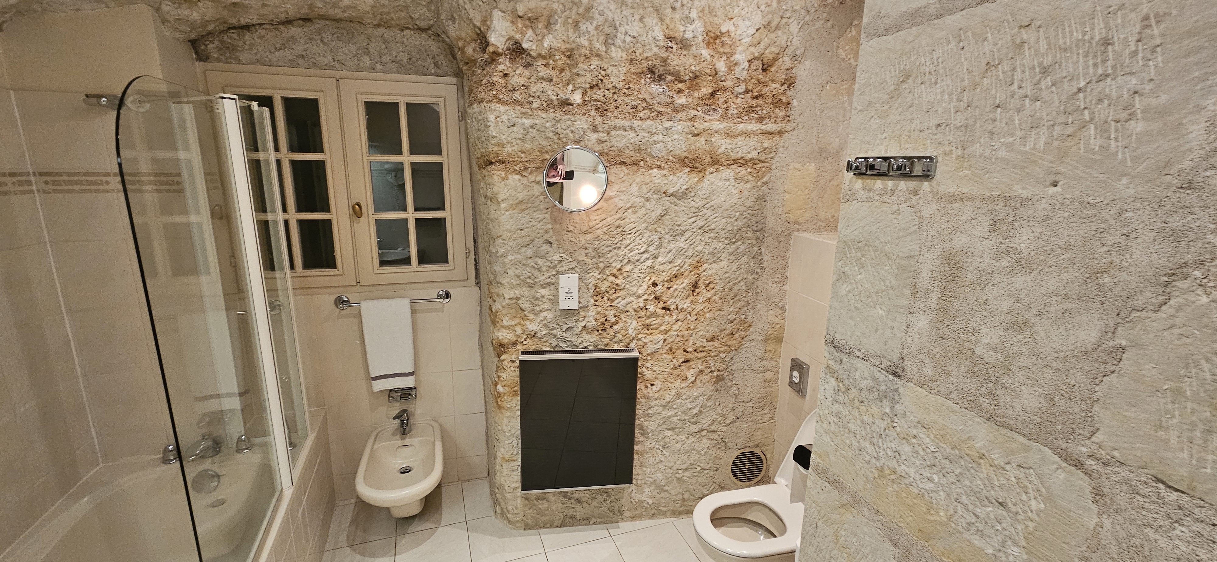 La salle de bain de notre chambre troglodyte était un peu old school avec une douche pas pratique et support défectueux. Dommage car tout le reste était top. Mention spéciale à l'équipe très pro et accueillante