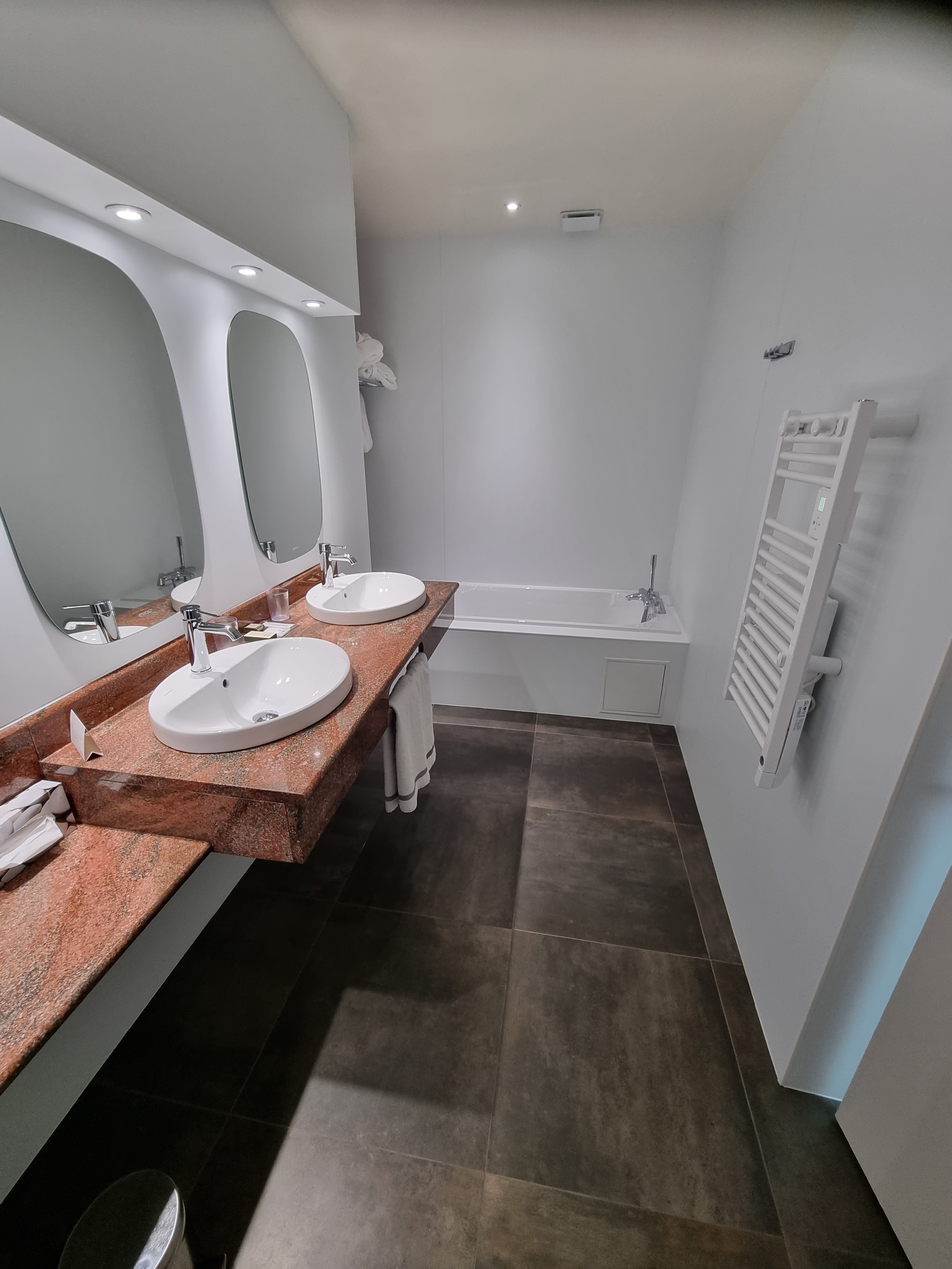Belle chambre originale et moderne petit bémol pour les salles de bains à refaire. Restaurant excellent dommage qu’ils nous est oubliés pour la mises en bouche. Par contre petit déjeuner pas du tous à la hauteur de l’etabaissement et plutôt comparable à un petit déjeuner d’un hôtel 2 Etoiles.