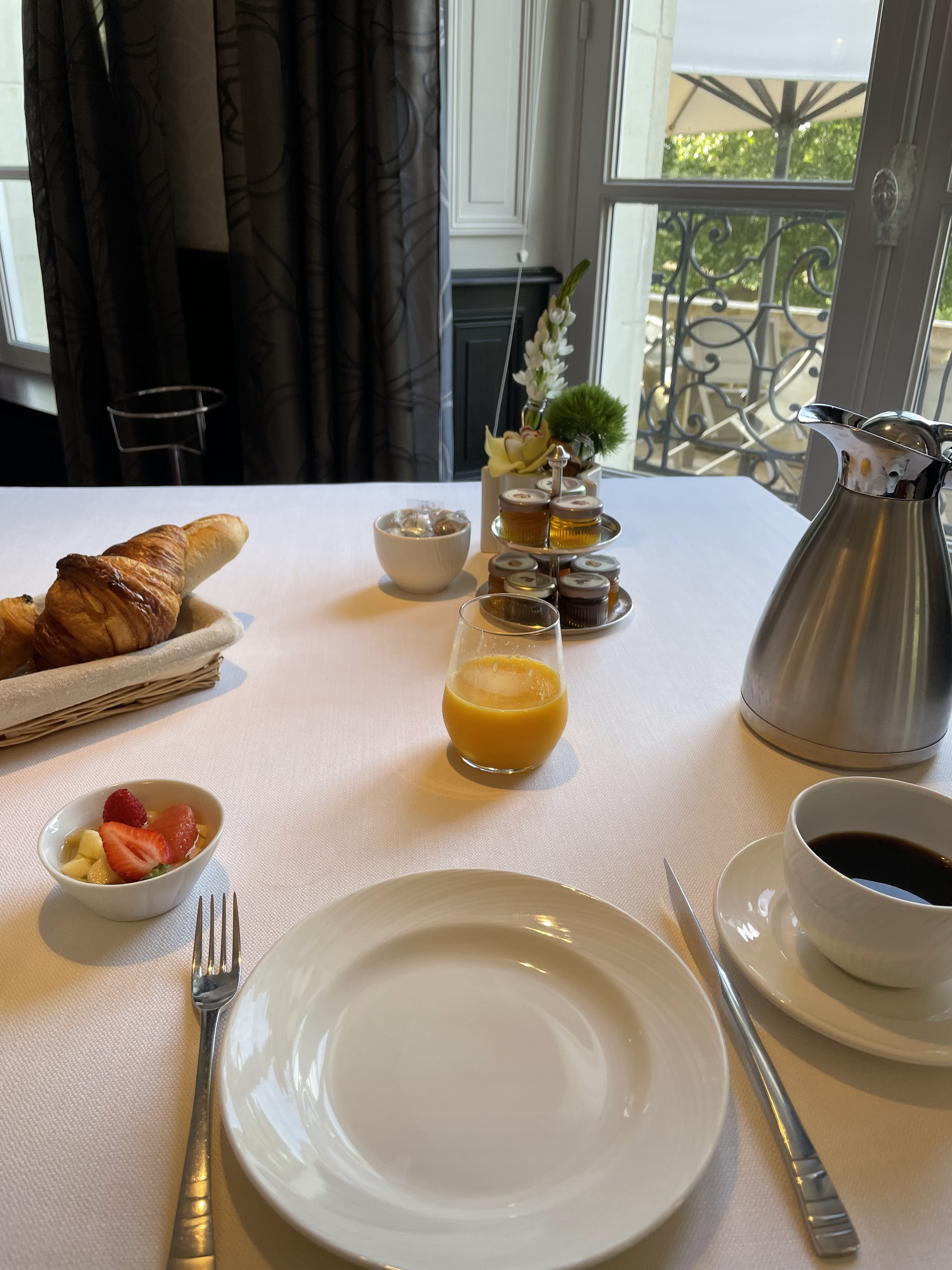 Petit déjeuner le samedi, puis déjeuner en amoureux au restaurant gastronomique des Hautes Roches le dimanche. Très belle expérience avec un service discret et chaleureux. Les plats étaient délicieux et le lieux magique avec une vue imprenable sur la Loire. Nous y reviendrons avec plaisir pour tester le bistrot cette fois!