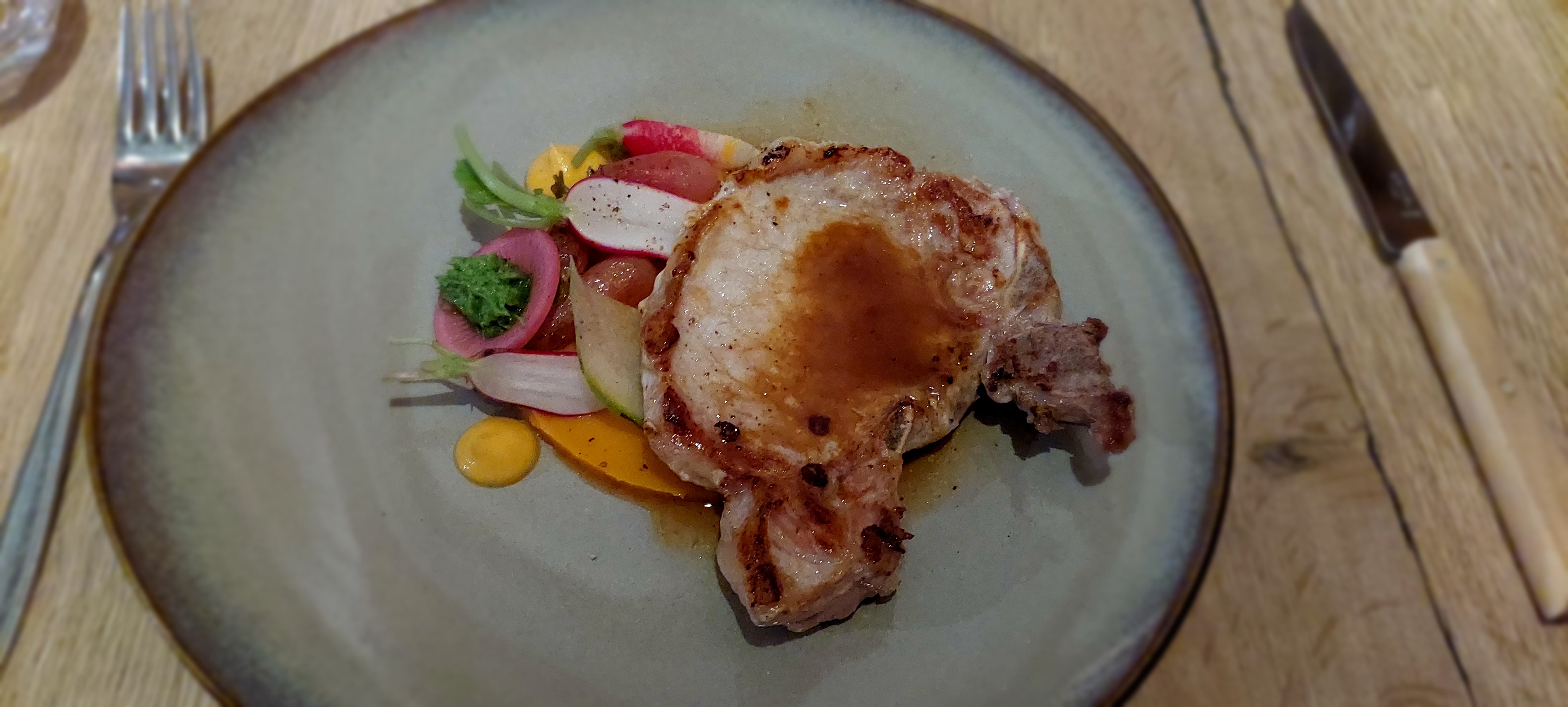 Cuisine inventive et réussie, j'ai adoré l'association mandarine et potimarron. La part belle est faite aux légumes, mais l'escalope de porc - cuisson et saveurs extra - est un délice ! Les propositions pour le vin et les accords mets et vin sont très intéressantes, belles découvertes à la clef!