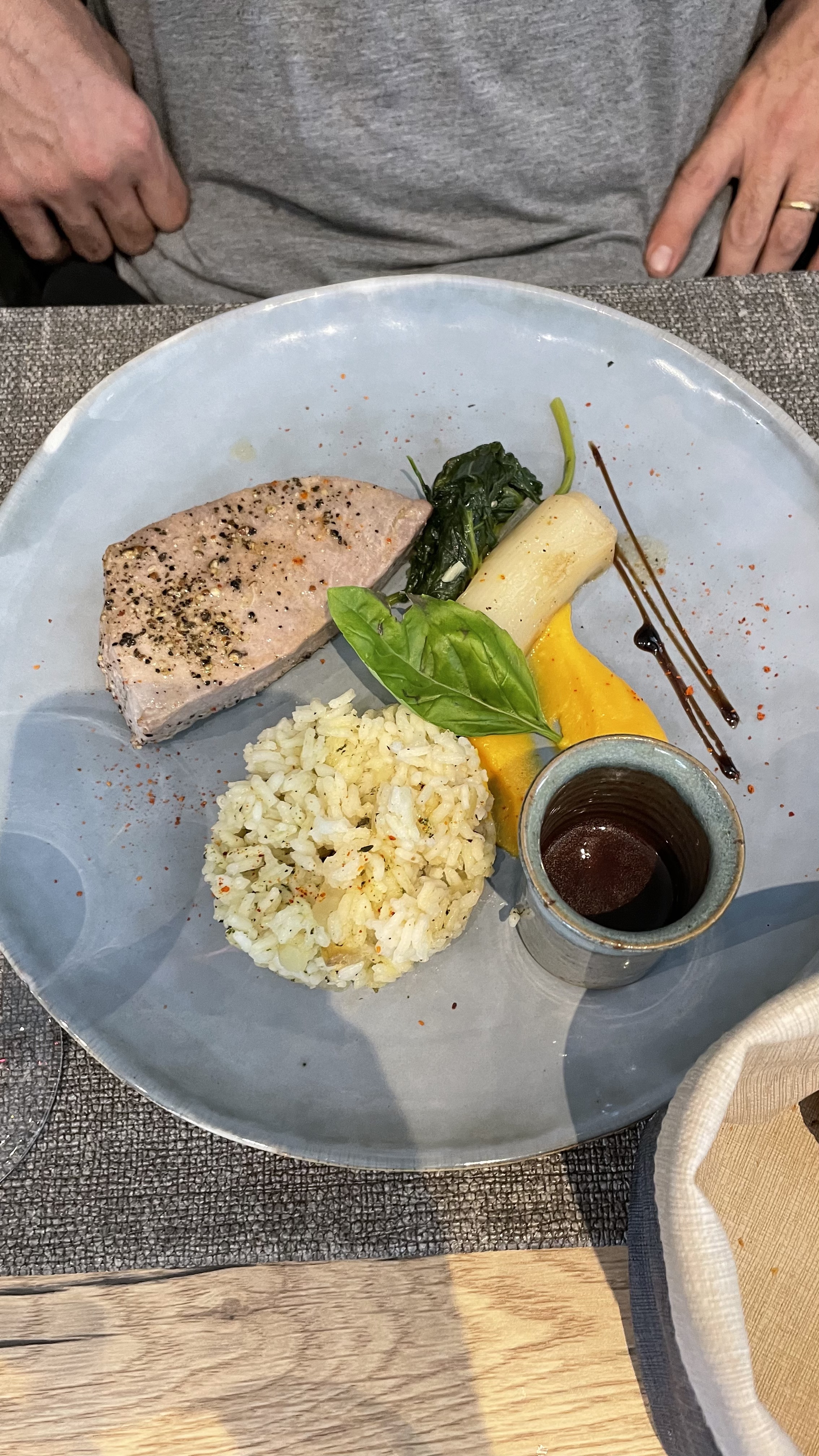 Nous nous sommes appuyés sur les avis de Google et n'avons pas été déçus. Au contraire : nos attentes ont été largement dépassées. Service extrêmement chaleureux, restaurant élégant et de qualité, carte petite mais fine, qualité au top et bon rapport qualité/prix. Les sauces sont très sophistiquées et ont le goût d'un rêve ! Malheureusement, nous ne sommes que de passage, mais nous pouvons fortement vous recommander une visite ! Ce souvenir restera avec nous ! Merci!