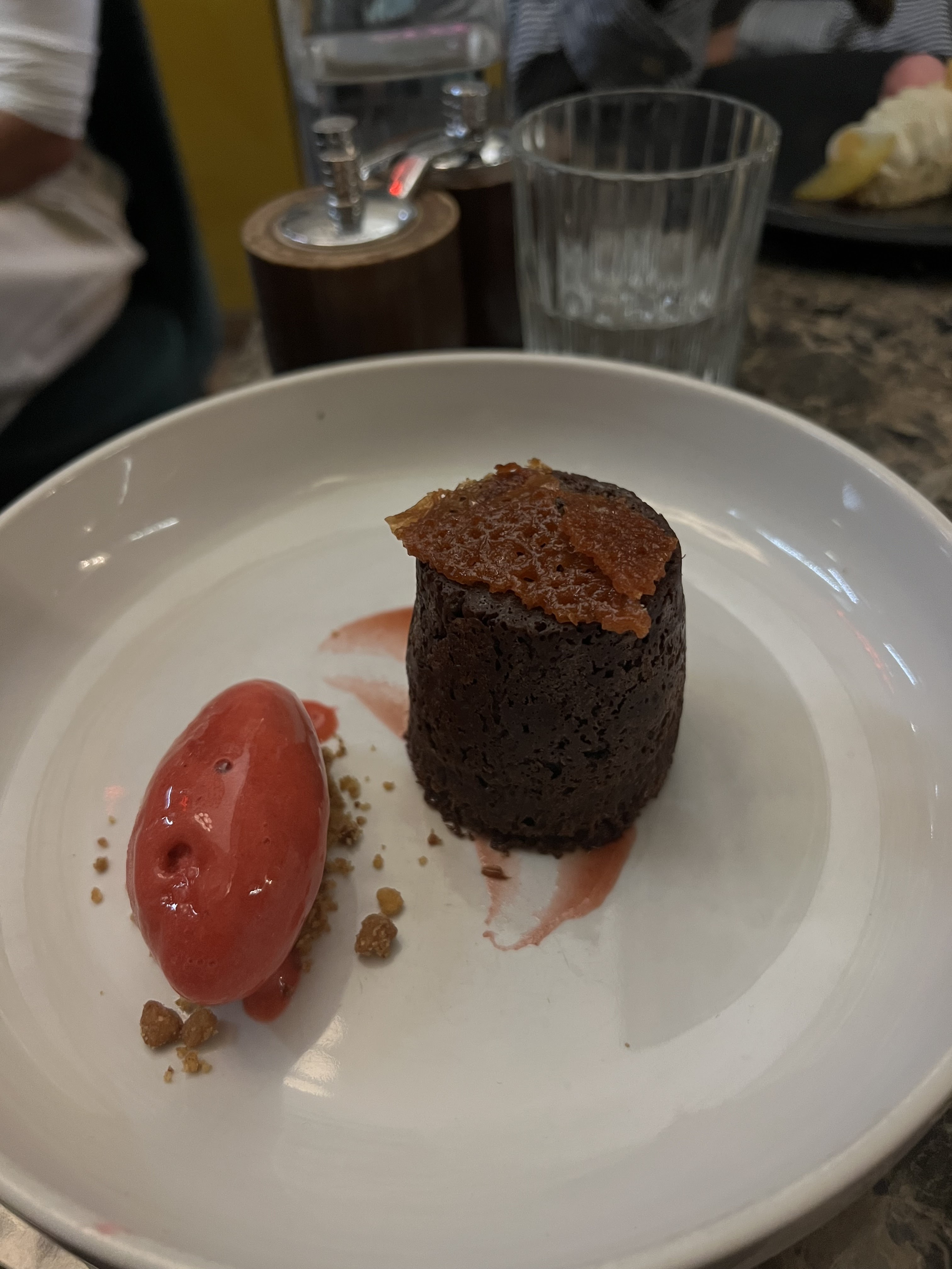 Très agréablement surprise. Dîner un dimanche soir au 2nd service. Tout était vraiment très bon. Saumon cuit à la perfection. Dessert au kiwi frais et super bon. Petit bémol tout de même. Mon amie avait pris le fondant au chocolat censé être servi avec des poires pochées. Le fondant arrive seul... je demande où sont les poires. On me répond ah désolée il n'y en a plus... j'ai trouvé ça très moyen. Au moins prévenir avant, ce n'est pas très pro je trouve.