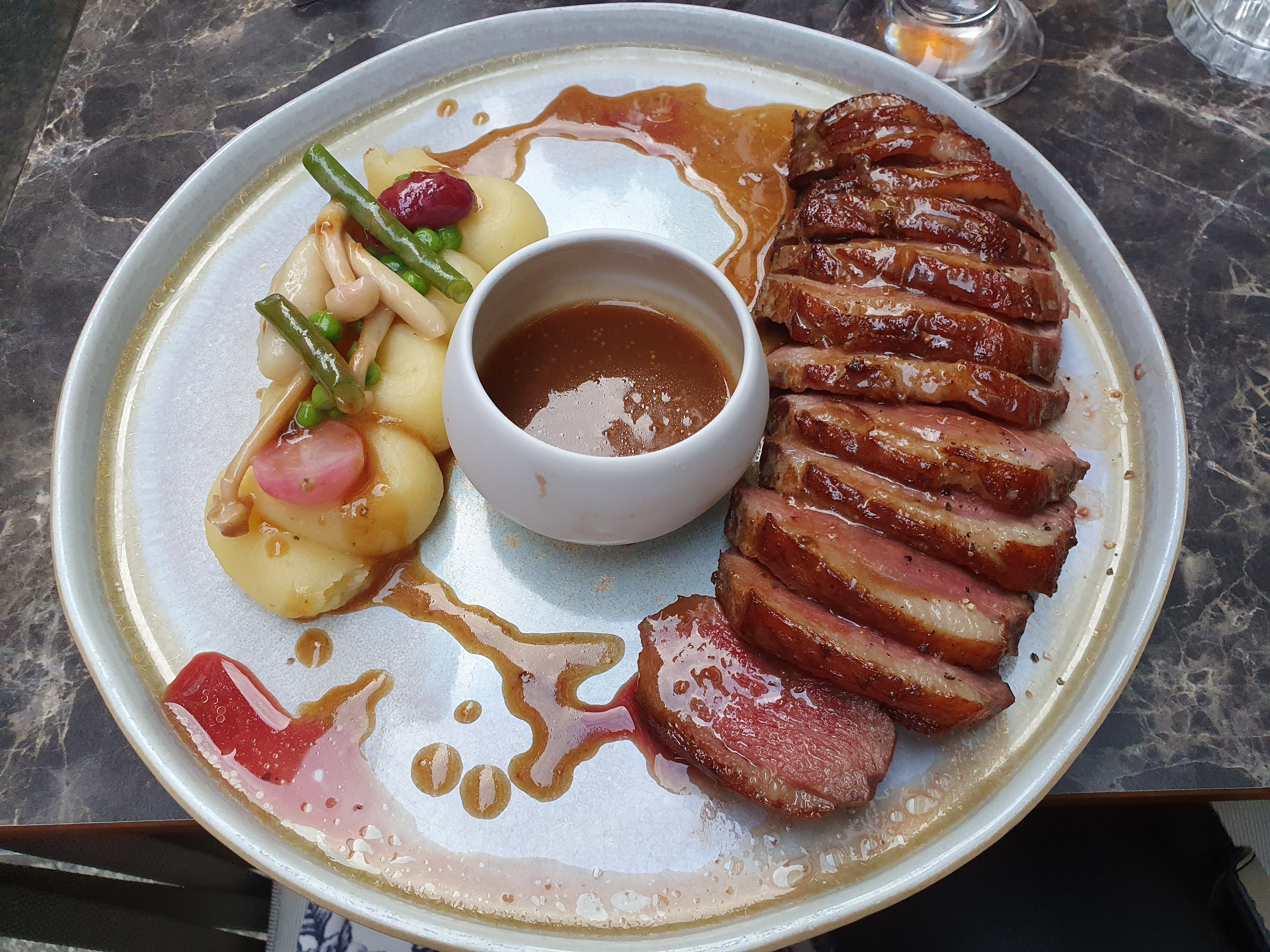 Impeccable !! J'adore, les plats sont digne d'un grand gastronomique à 50 étoiles à des prix très abordable, des saveurs surprenantes, des surprises, je conseille le magré de canard et les pâtes à la truffes. Rapport qualité prix imbattables. Les serveurs sont très agréables. Très gentils, jeunes, rapides et aimable. Nous avions le serveur, très gentil ! Je recommande absolument.