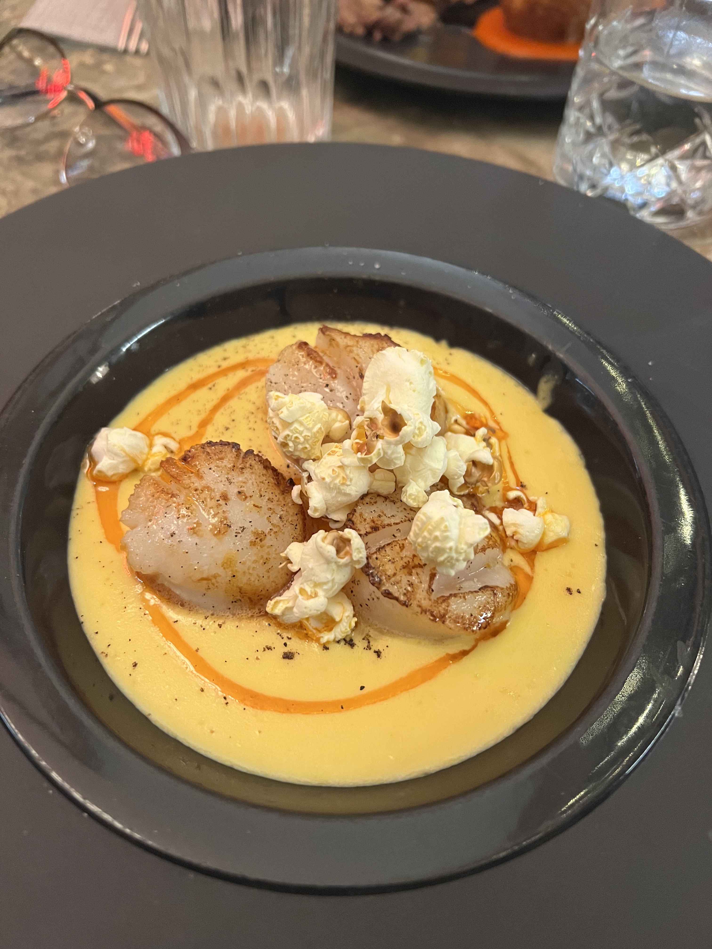 C'était excellent ! En entrée : Oeufs mollets frits au panko - crème syphonée chêvre & miel, lard de colonnata, noix d’Amazonie En plat : Noix de Saint Jacques, crème de topinambours, chili oil, baie de verveine En dessert : Et fondant au chocolat avec croquant de sésame Le tout pour 32,5€. Rapport qualité/prix super. Et l'équipe est accueillante et sympathique.