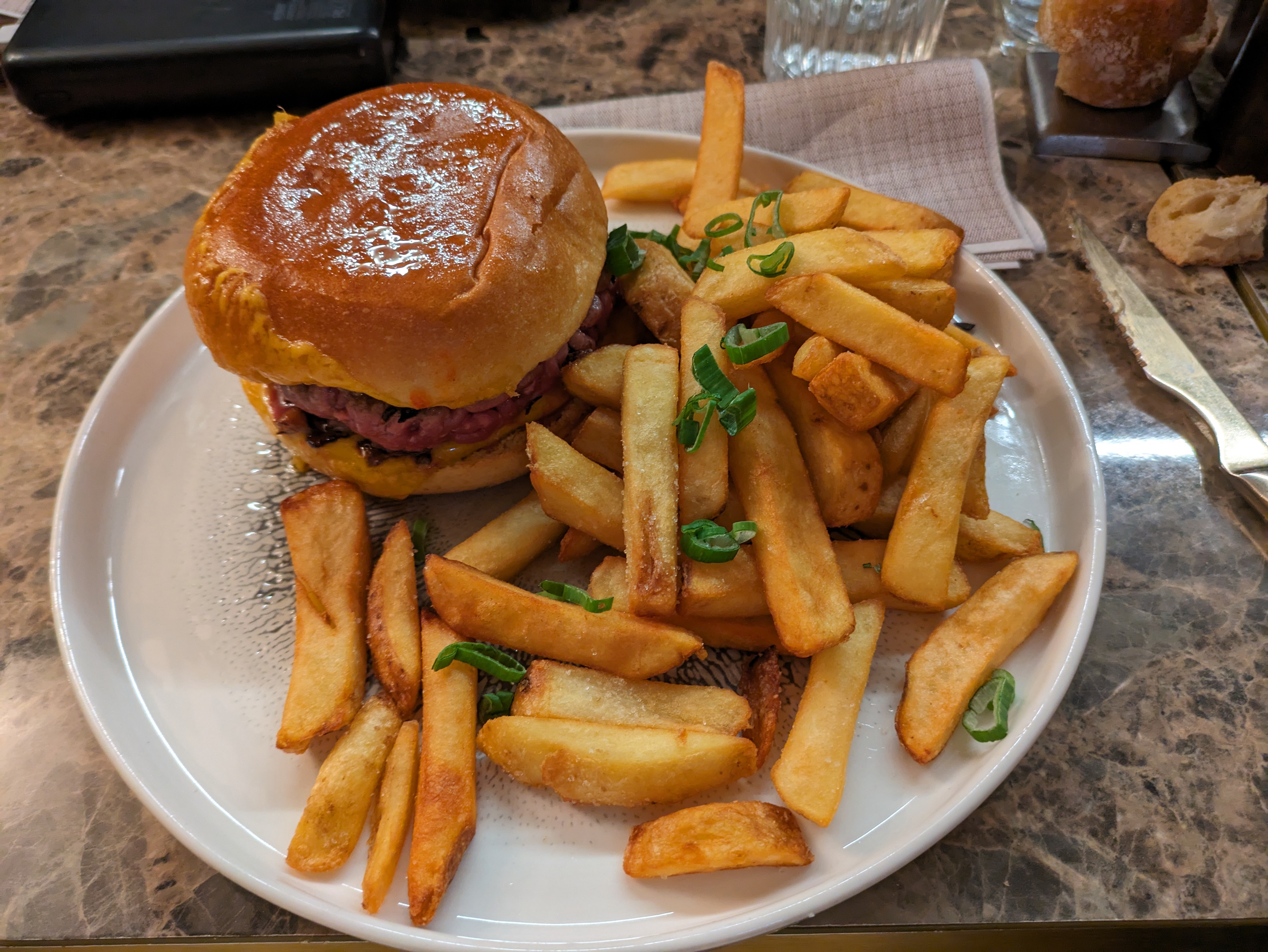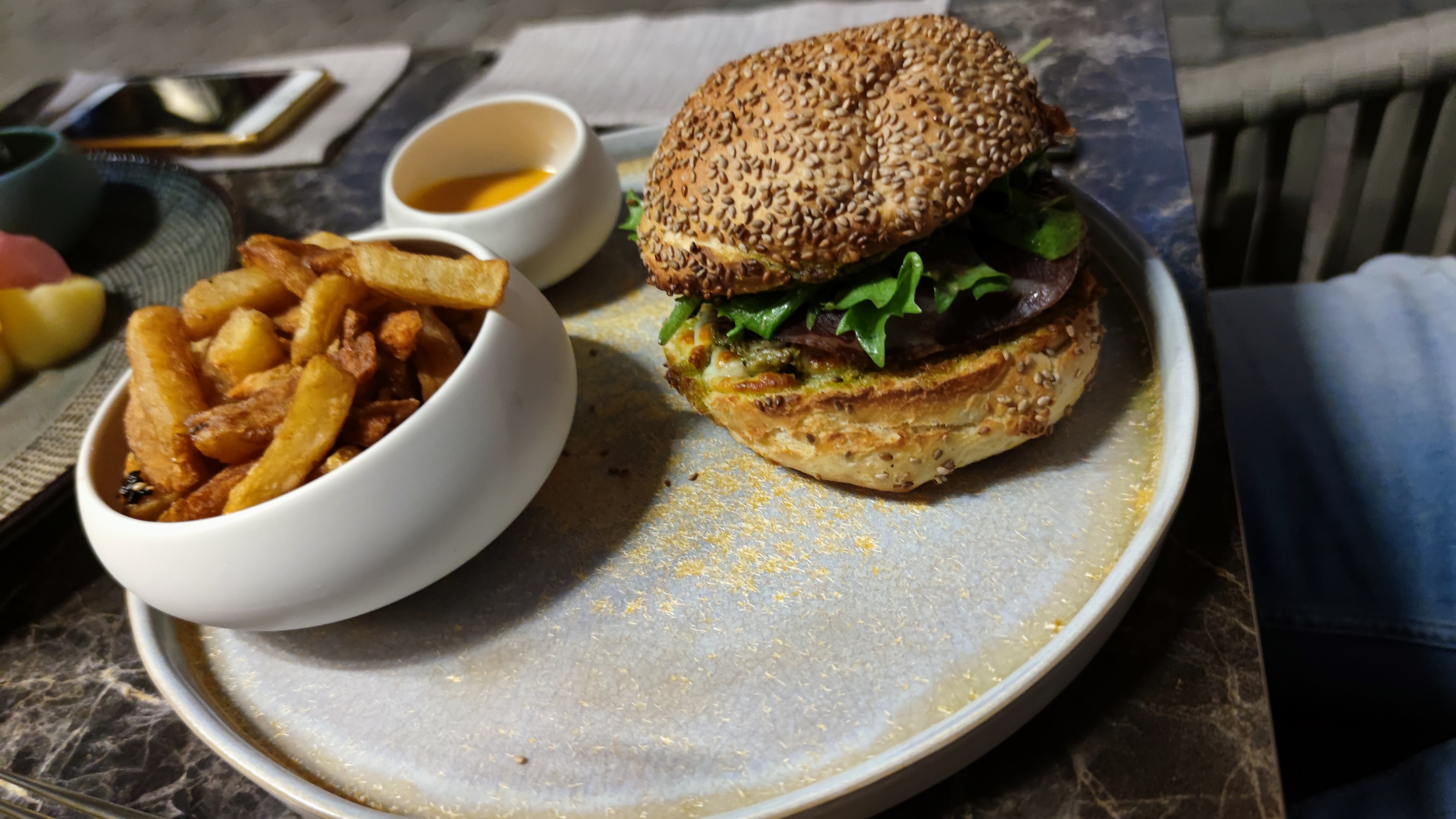 Grosse pépite ! Le menu vaut le détour, un mariage des saveurs qui est parfait et surprenant. Le prix du menu est très largement justifié. On mange très bien, dans une rue vivante, l’équipe est agréable et très accueillante. Nous avons demandé des conseils au serveur qui était très agréable et disposé à nous donner son avis objectif sur les plats et nous conseiller. Nous y sommes retournés 2 fois en 2 jours c’est vous dire si cette adresse en vaut le détour. Les plats sont fins et parfaitement équilibrés. Même un simple burger est revisité et délicieux. Vraiment, vous pouvez y aller les yeux fermés.