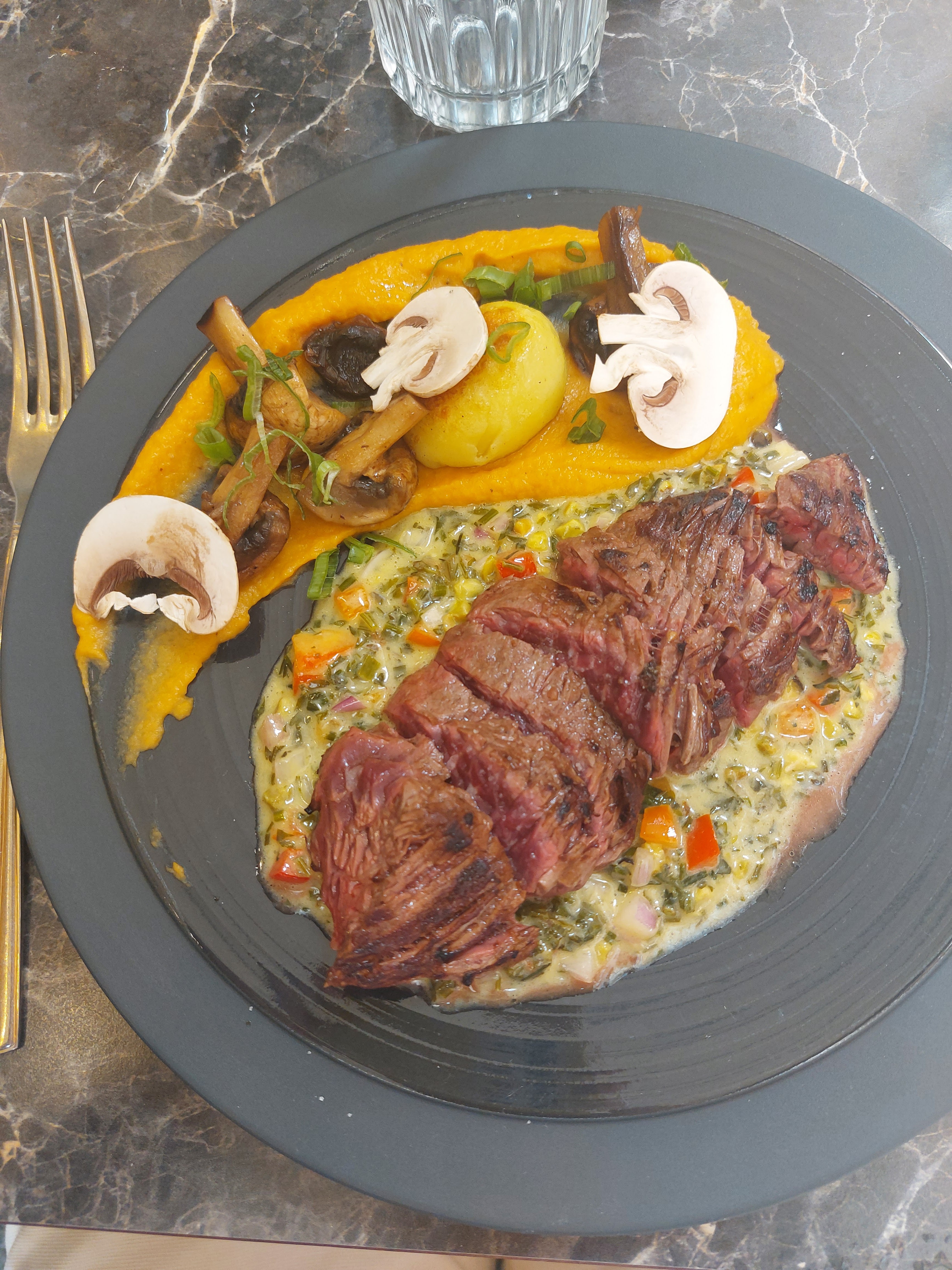 Restaurant très sympa! Service agréable, attentive. Repas délicieux, plat d’accompagnement super bien choisi. Un peu serré en haut mais en fin de compte vivement recommandé!