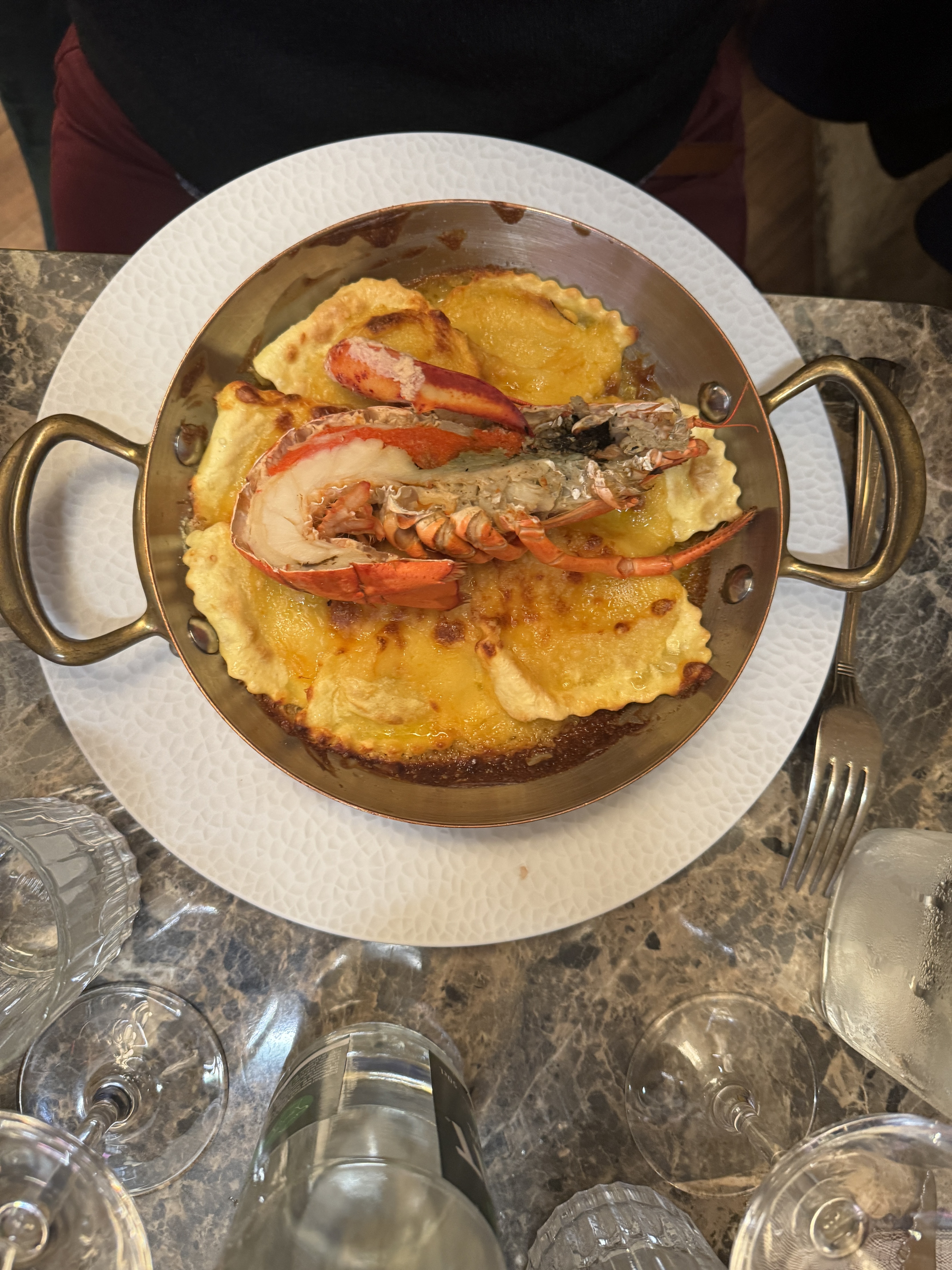 L’entrée était bonne. La plat quant à lui m’a laissé très perplexe, une association de saveurs pas terrible et une assiette de pâtes au homard très petite. Bons desserts.