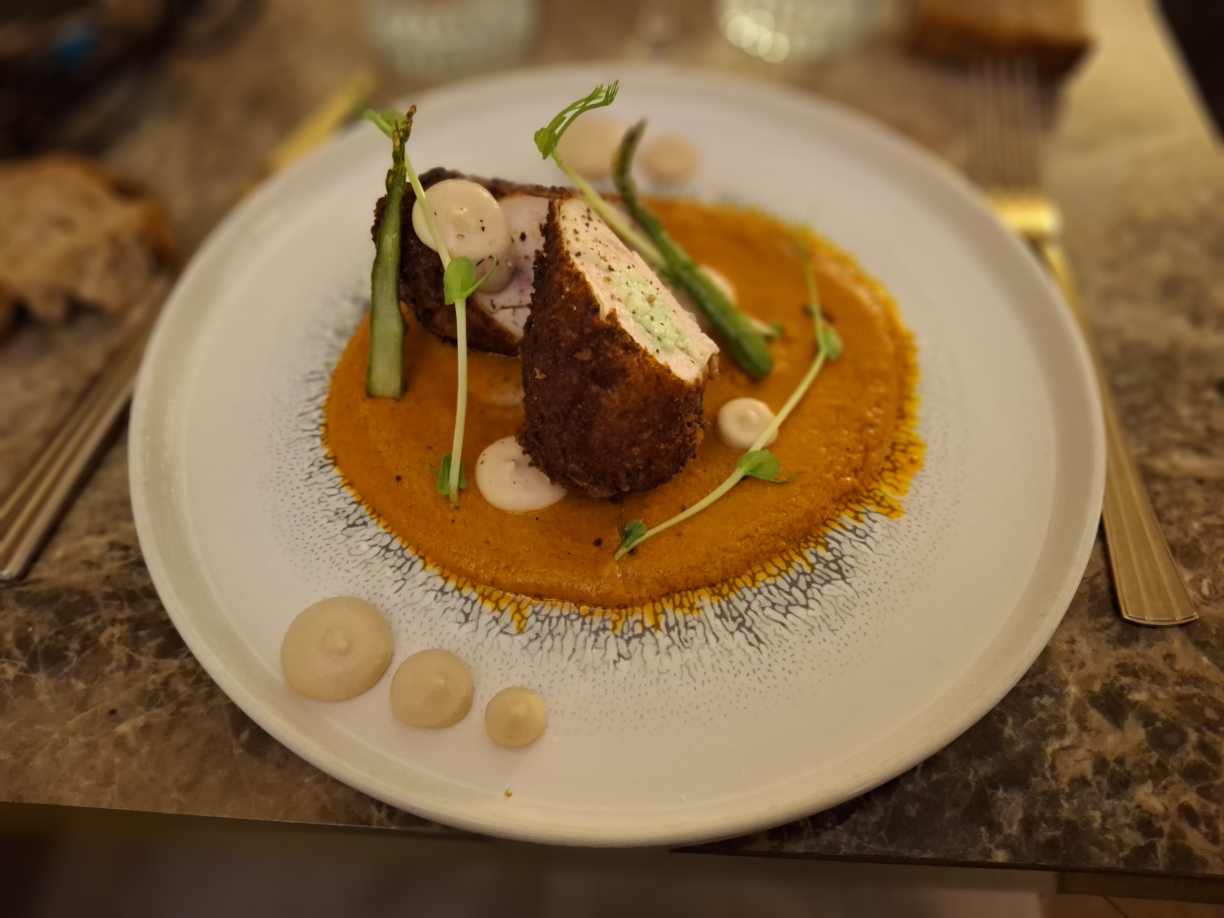 Une cuisine raffinée, extrêmement bien équilibrée en terme de saveurs et une quantité parfaite pour un menu. Un cadre très agréable et un serveur tout aussi sympathique. Je recommande vivement.
