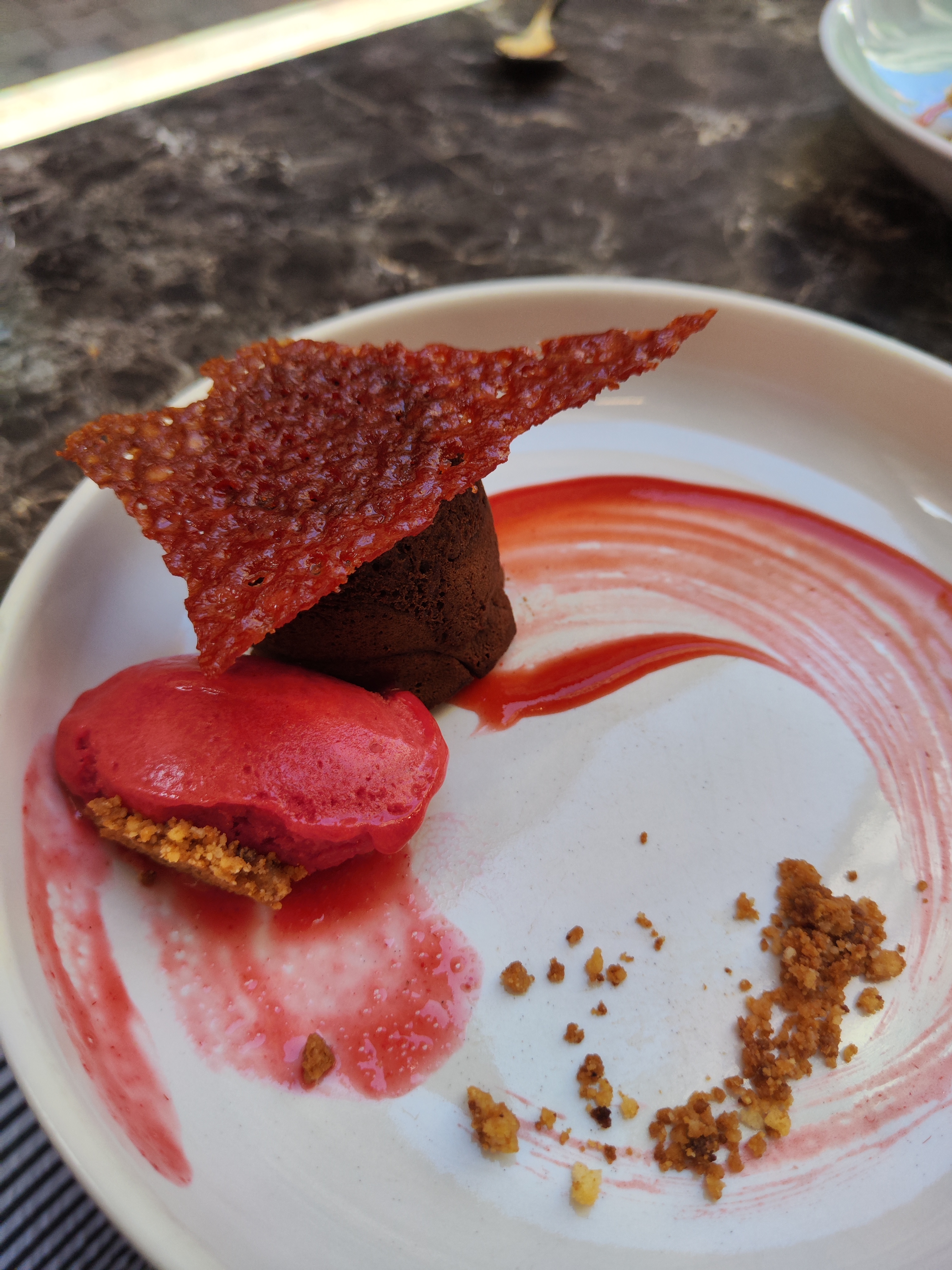 Une très belle trouvaille: des plats bien travaillés et bien exécutés. En plus on voit les chefs au travail (la compensation d'être a l'intérieur et non à l'extérieur). Chaque plat est un mélange de textures et de températures (bcp de sorbets accompagnent les plats: sésame ou tomate basilic)