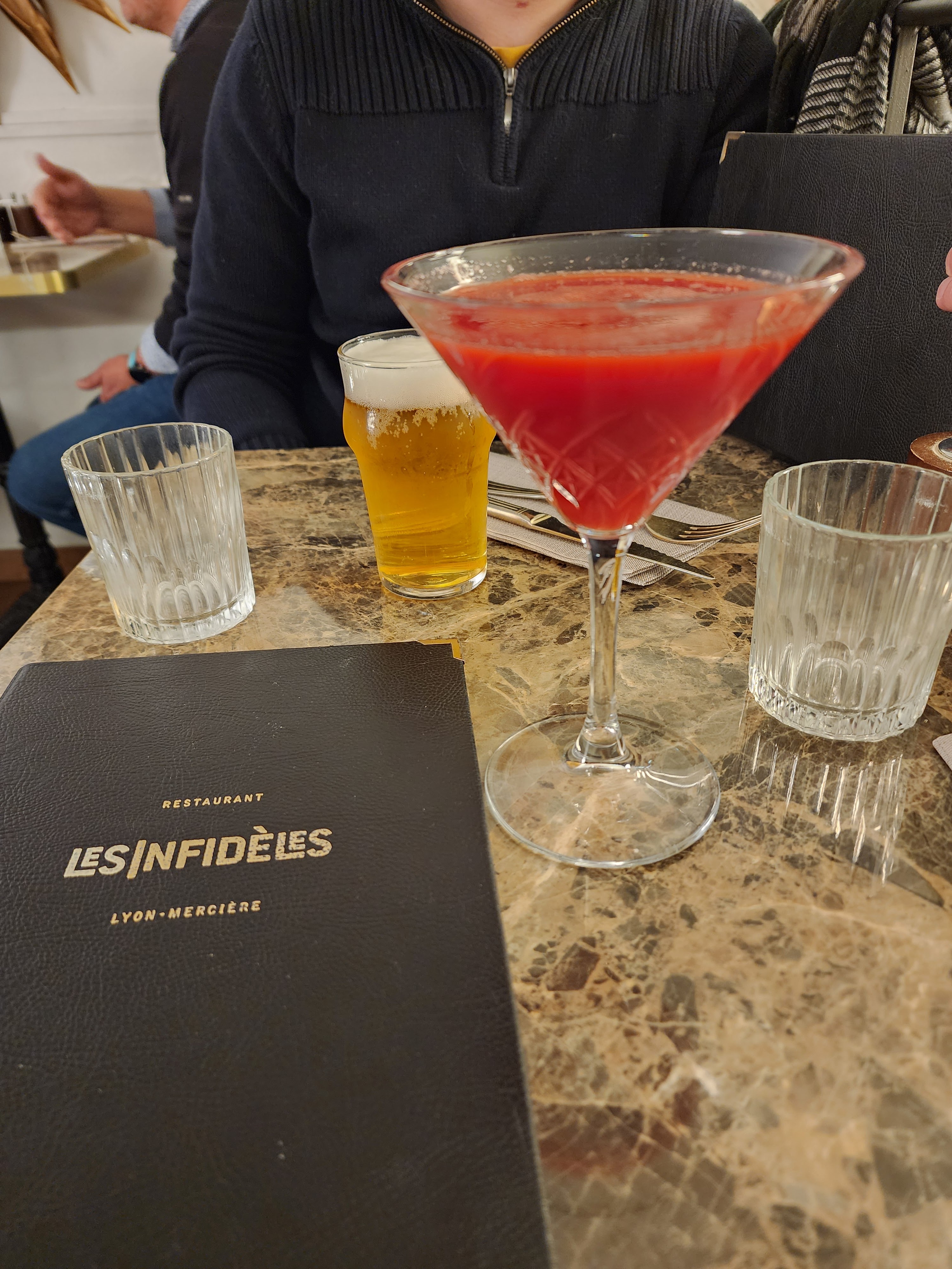 Restaurant vraiment très agréable, service au top, repas raffinés ! Si vous faites un tours à Lyon je vous conseille de vous arrêter chez les infidèles Je recommande !!