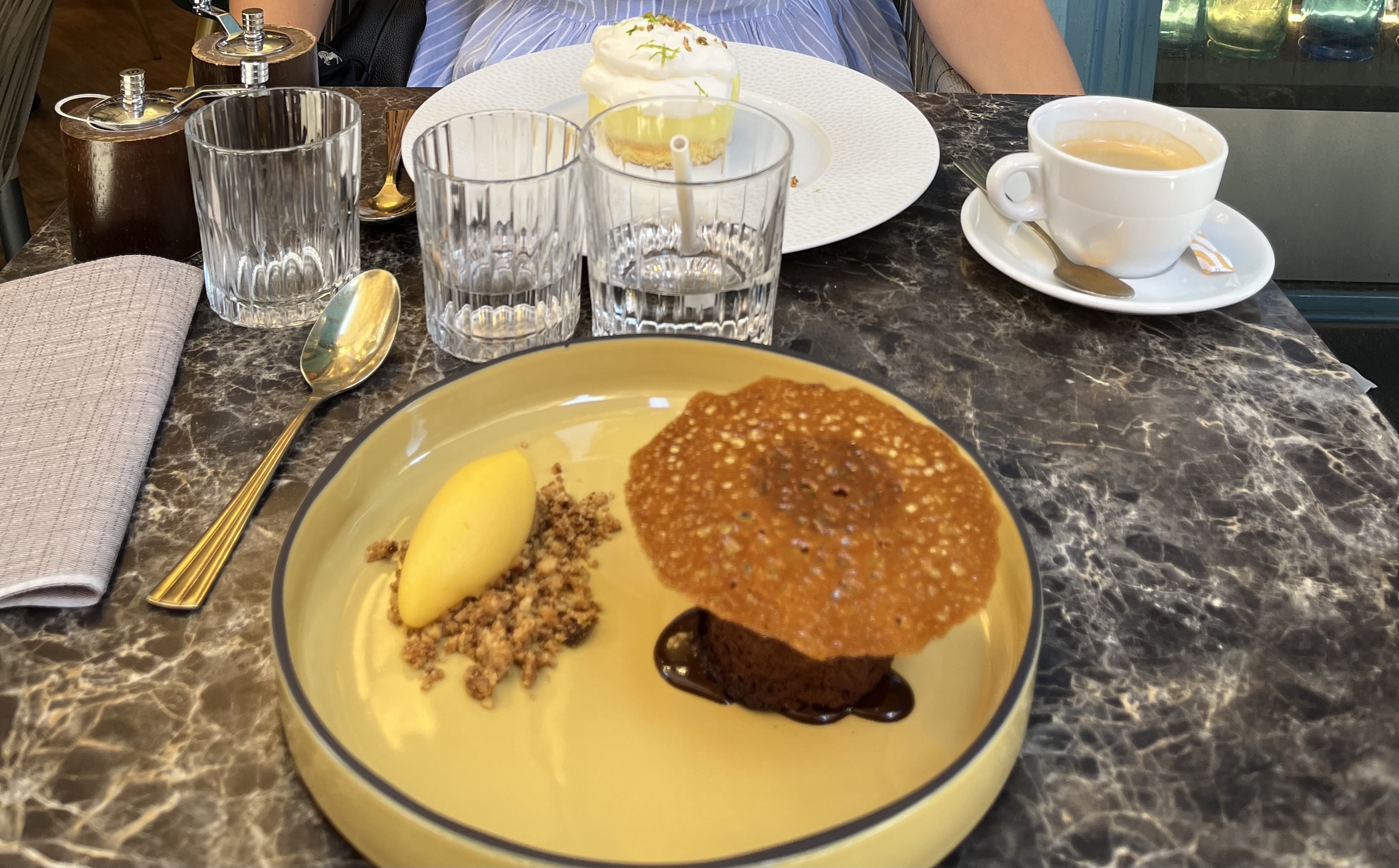 Un lundi midi en terrasse au soleil. Menu à 30€ entrée/plat/dessert très correct, pas mal de choix, plutôt original et la qualité au rendez-vous. Service de qualité. Merci !