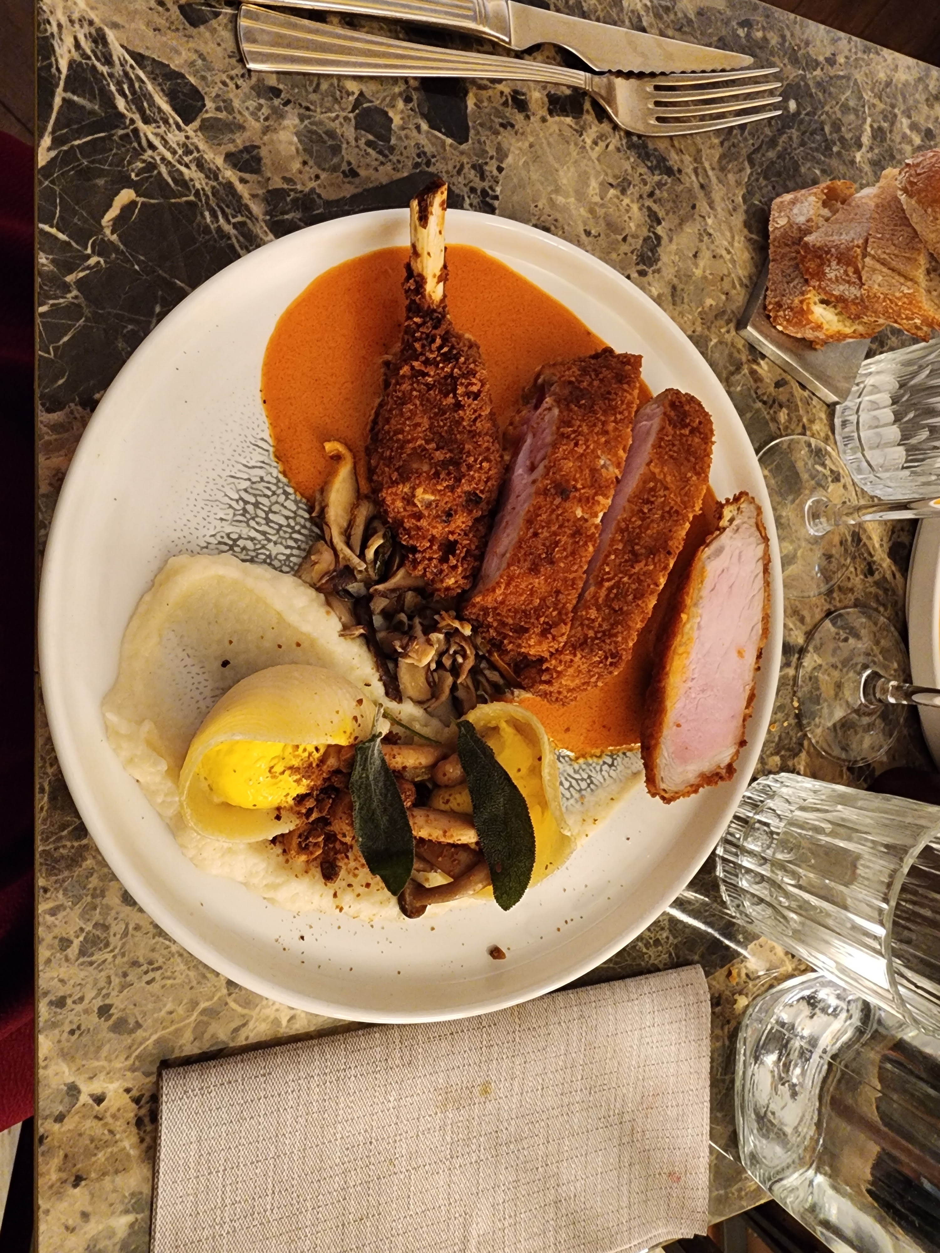 Restaurant trop petit, serré comme des sardines. Le poulet était pas assez cuit la viande était rosé, ressorti du restaurant en ayant encore faim. Pas dingue. Et payer 80€ .
