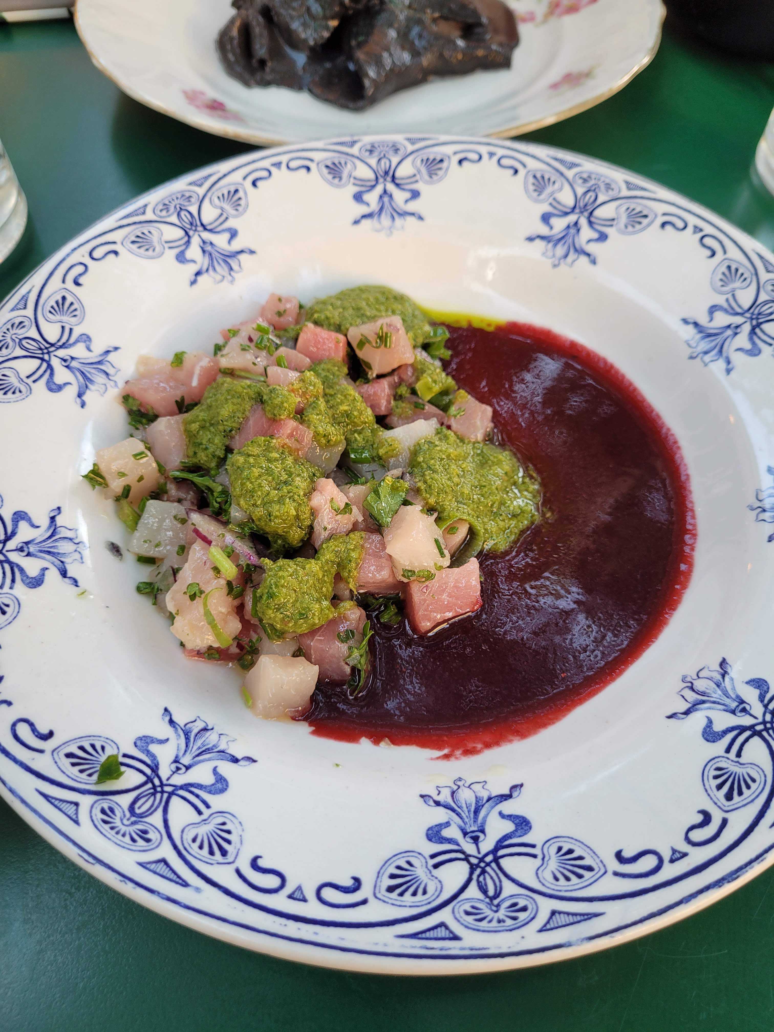 Un repas merveilleusement mémorable organisé par deux jeunes propriétaires vifs. Les chefs en rotation gardent le menu frais et intéressant et un accord vin à couper le souffle qui nous est suggéré est celui que nous n'oublierons pas de sitôt, mais la véritable star du spectacle est la salle confortable et l'atmosphère animée que créent les propriétaires. Très fortement recommandé.