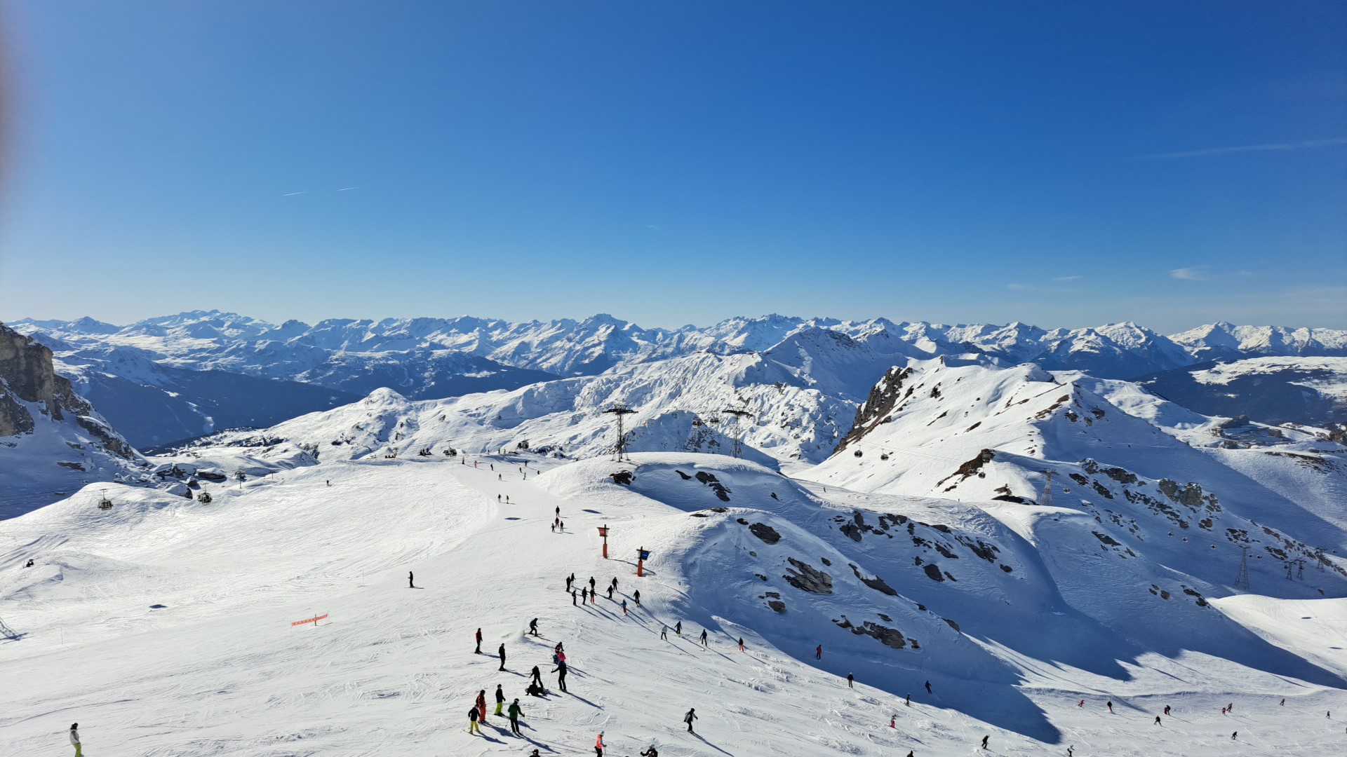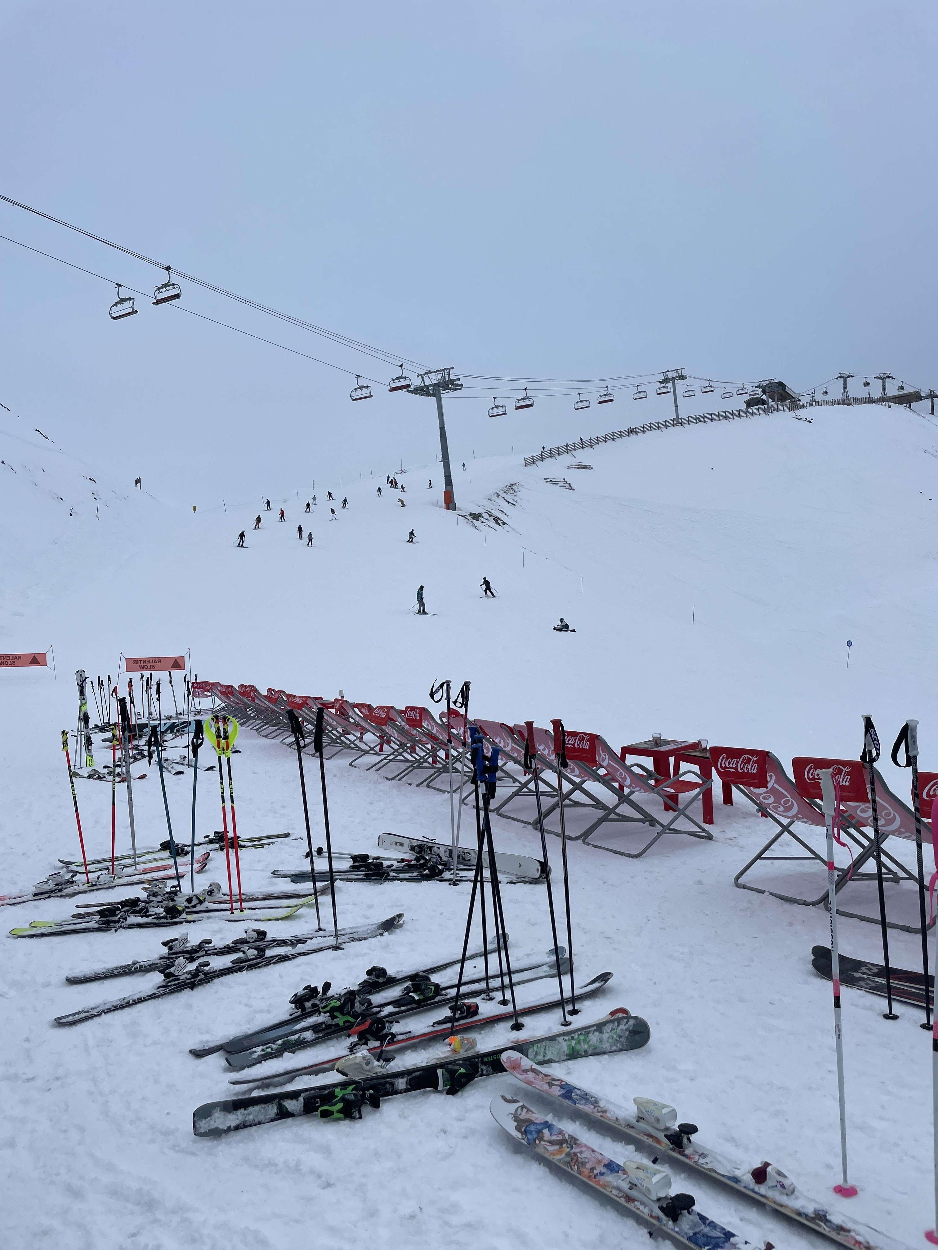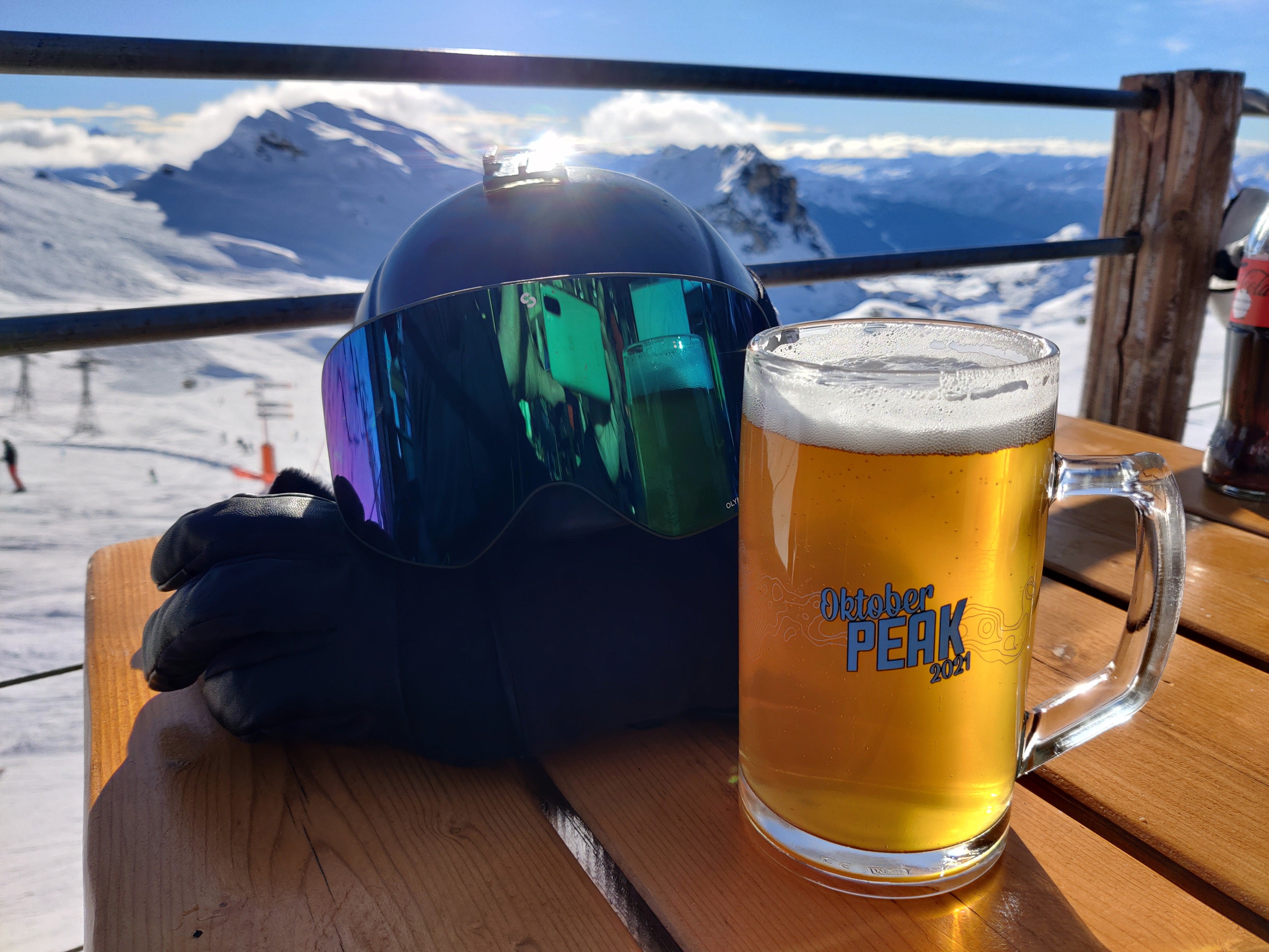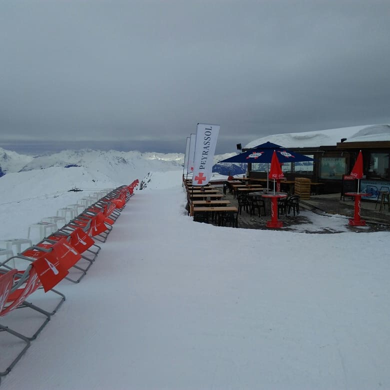 Un moment de détente au sommet ! Cadre, personnel, musique et vue font de cette pause au bord des pistes un moment de plénitude...