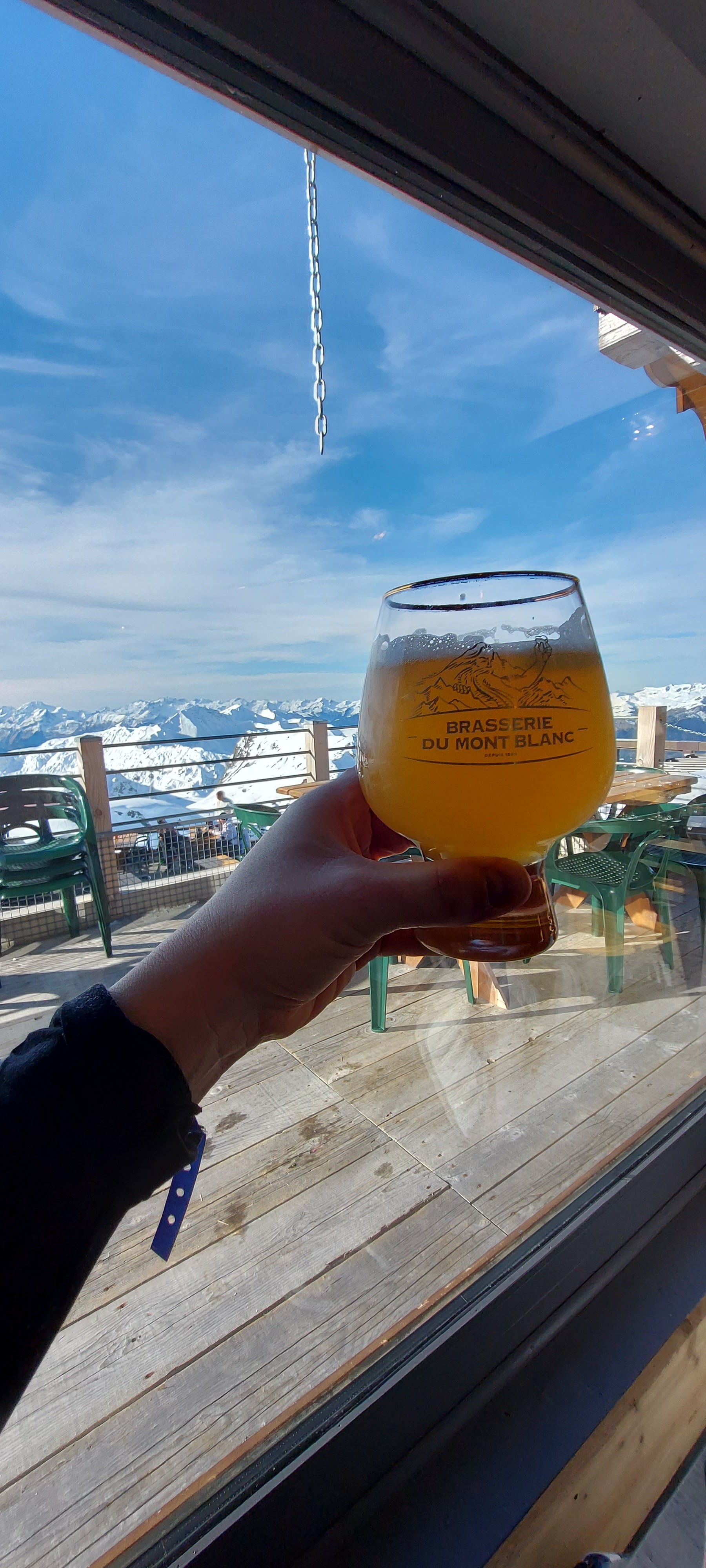 Super moment détente sur les piste avec vue sur le Mont Blanc de la terrasse