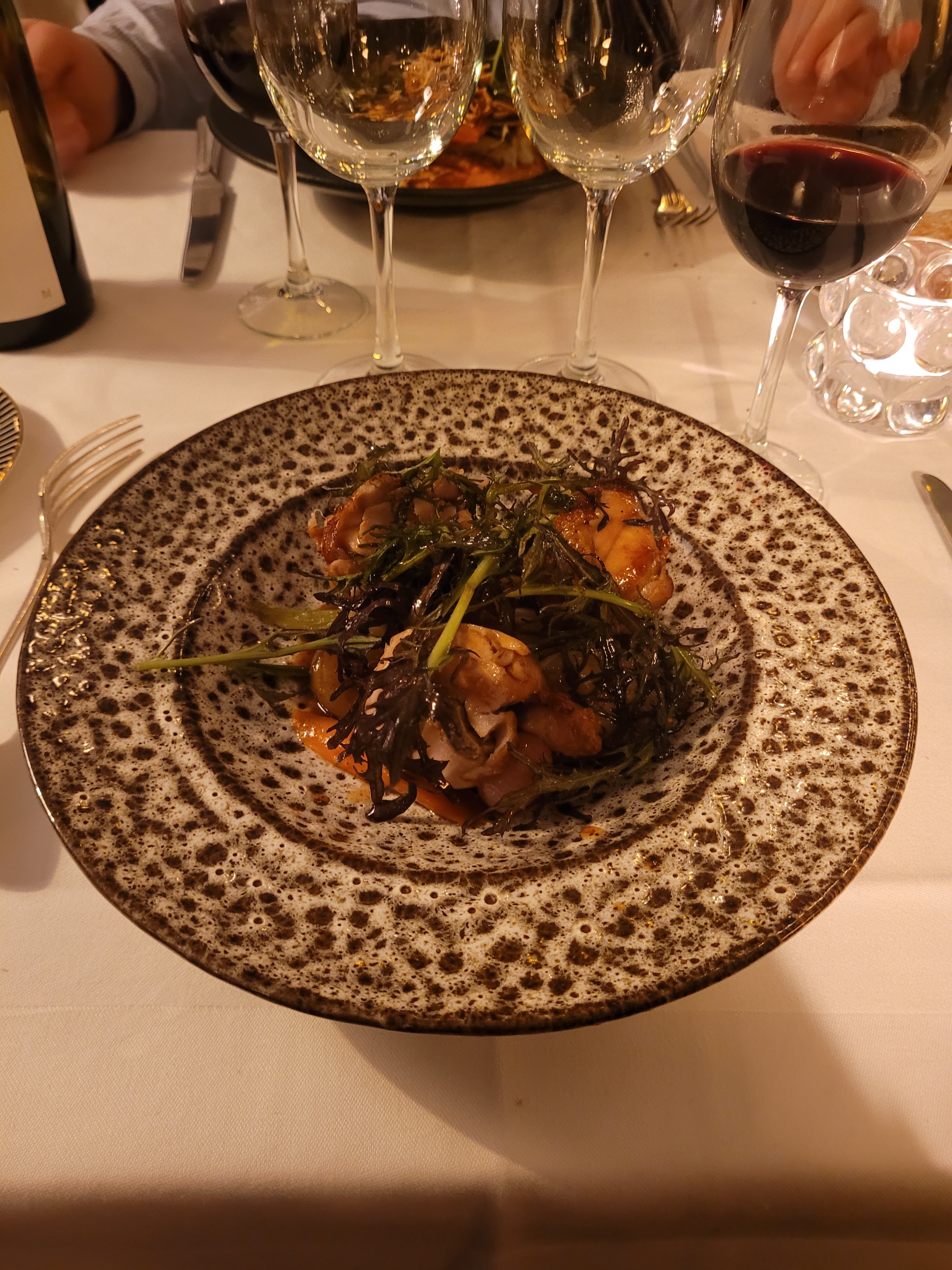 L'endroit a été recommandé par le réceptionniste de notre hôtel et il n'avait pas tort. J'ai été impressionné par un si petit restaurant, mais par une nourriture si délicieuse. Les raviolis qui sous la sauce ont fondu dans ma bouche, le froiegras délicieux à la viande tendre, les escargots au dessert que nous n'avons pas pris en photo. Tout cela avec le Chardonnay était génial, je ne peux pas le décrire, je le recommande vivement