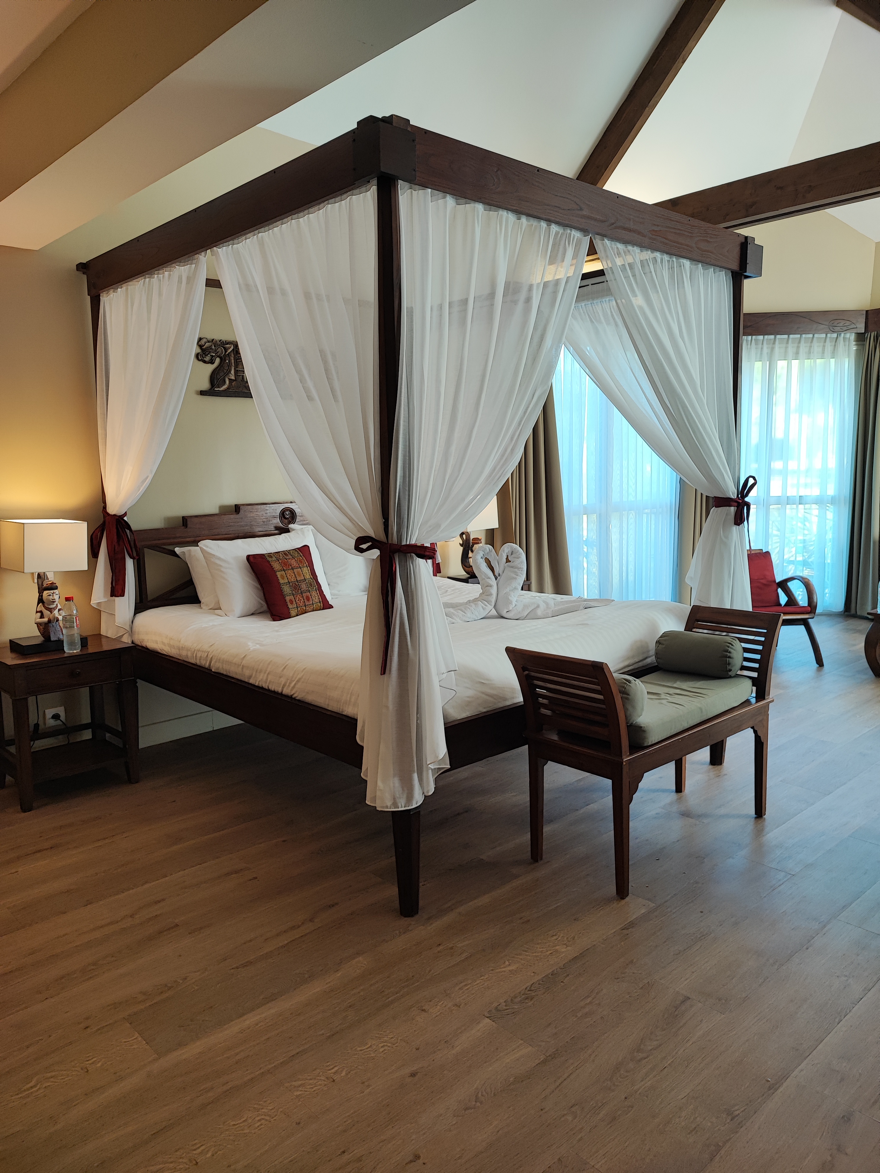 Superbe séjour au sein de votre hôtel. Le personnel y est très accueillant et serviable. Tout le complexe hôtelier avec les jardins sont d'un dépaysement, conformes aux photos du site. Nous logions dans une junior suite. La chambre était très spacieuse, avec une hauteur sous plafond très agréable. Rien à redire sur la propreté du lieu. Et côté sommeil, on a très bien dormi. Pour ce qui est du buffet petit déjeuner et dîner, la nourriture y est plutôt bonne. Chacun y trouve son compte. (Ne pas s'attendre à manger des choses différentes d'une journée à l'autre ) Nous reviendrons avec grand plaisir
