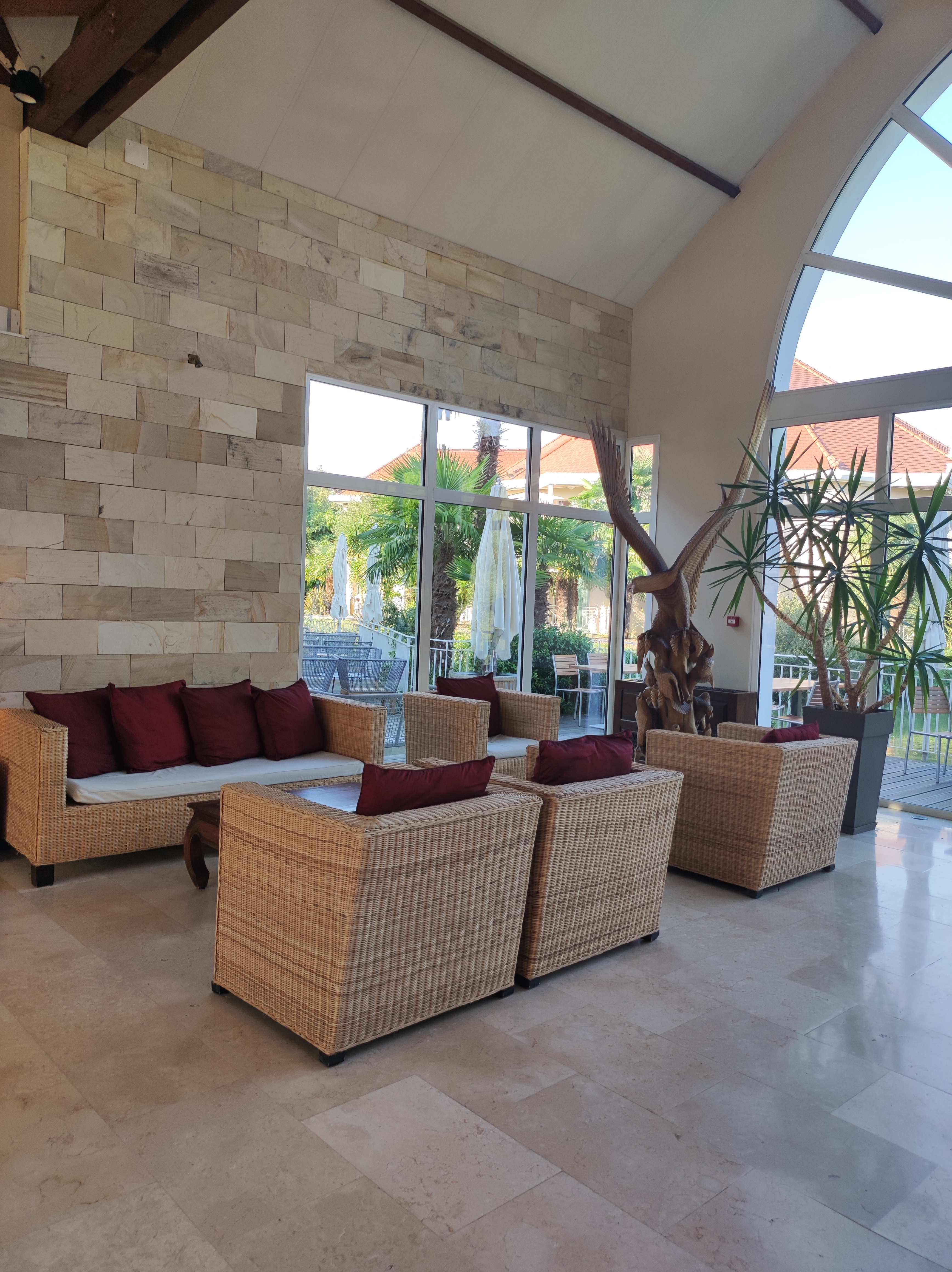 L'hôtel est grand avec un environnement très naturel et magnifique 👌🏼 piscine chauffée et grande. Les chambres sont très belles avec des lits très confortable ! Les repas du soir est très complets avec énormément de choix et le petit déjeuner est également très complets et très bon . Il y a une air de jeu en bois. J'ai vraiment adoré ! J'y retourne avec plaisir 😉