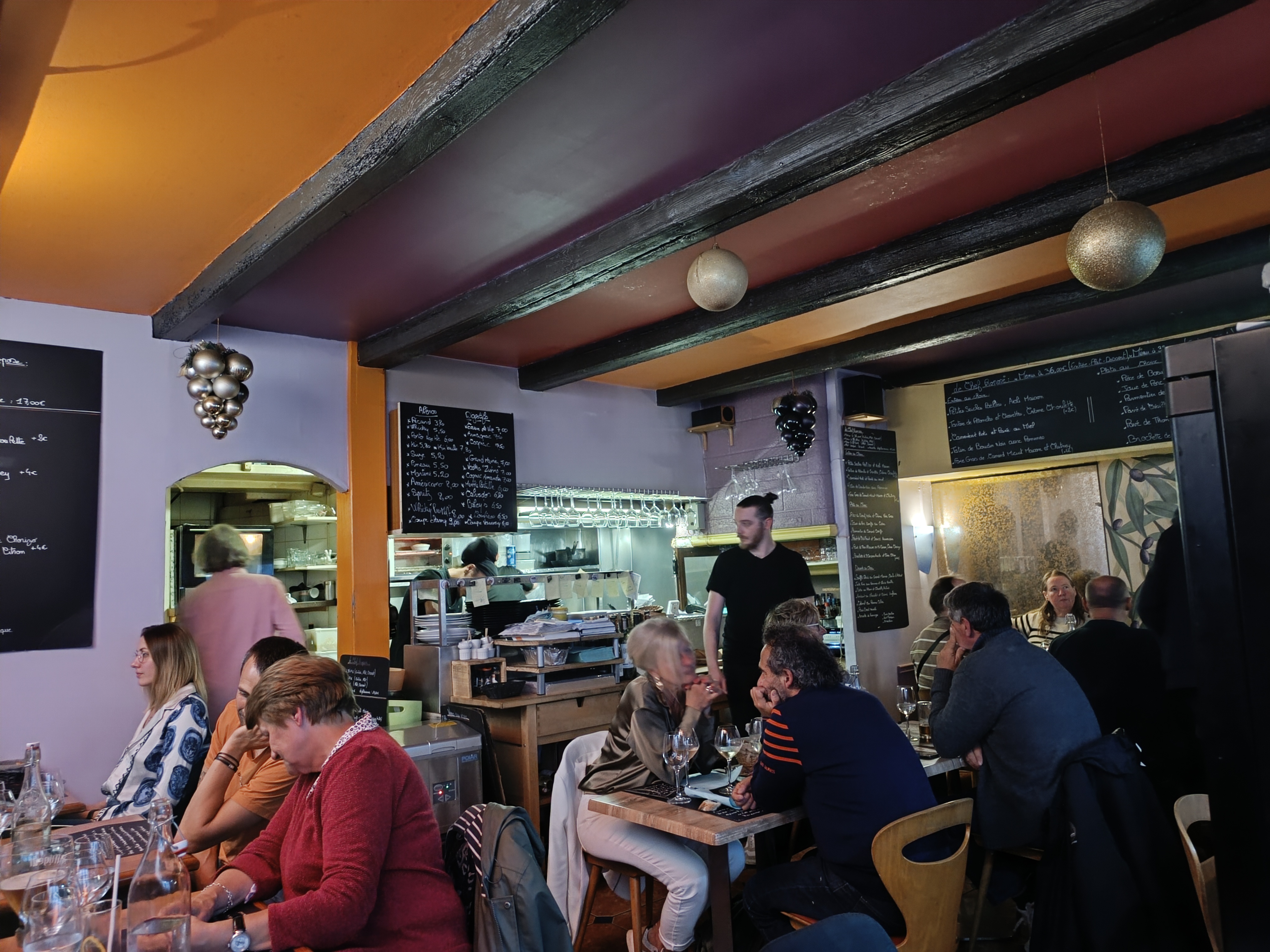 Excellent, une ambiance joyeuse et sympathique, des clients qui échangent entre eux. Beaucoup de rires et de bienveillance Et quand dans l assiette, la magie opère Il y a si longtemps que je n avais pas mangé une brochette de saint Jacques aussi délicieuse MERCIIII Les vins toujours bien conseillé. On y retourne dès qu on peut 😋😋😋