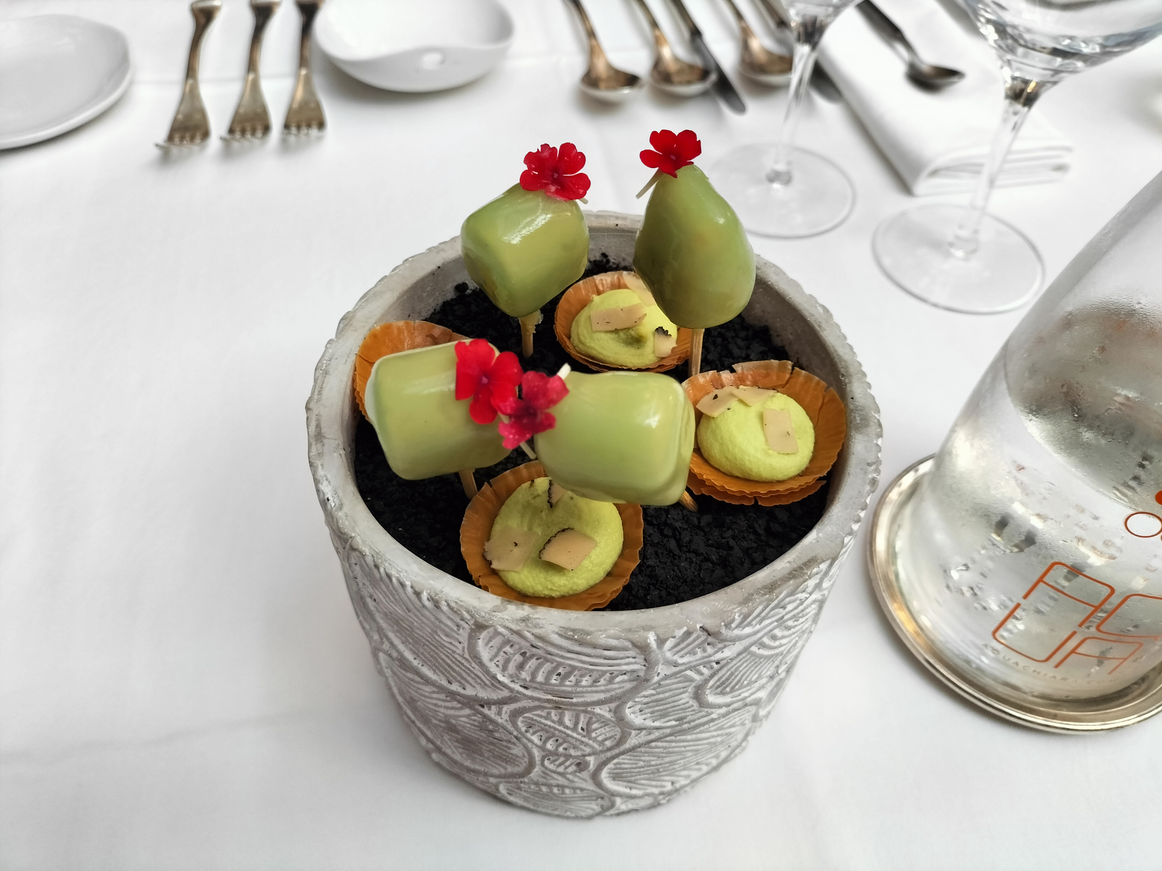 La nourriture était bonne et les vins accompagnés étaient adéquats. Ce qui a vraiment laissé un goût amer dans la bouche, c'est que cet endroit utilise des machines à cartes configurées avec une conversion dynamique de devises (DCC). DCC est essentiellement une arnaque censée donner aux clients la possibilité de payer dans la devise de leur pays. En réalité, cela ajoute une majoration de 3 à 6 % à ce que vous paieriez si vous laissiez simplement votre banque effectuer la conversion. Les commerçants sont censés demander dans quelle devise le client souhaite être facturé, mais ici, ils ne le font pas ici et je n'ai vu ce qui s'est passé qu'en obtenant un reçu. Une fois que je me suis plaint, la conversation a rapidement débouché sur le fait que je ne parle pas français et que si vous êtes en France, vous devez parler français. Bravo, un restaurant soi-disant gastronomique réprimandant ses clients parce qu'ils ne parlent pas français et se livrent à des escroqueries. Si vous voulez un service hargneux, du mépris et vous faire arnaquer, c'est l'endroit où aller. On m'a proposé un remboursement en espèces de la différence.