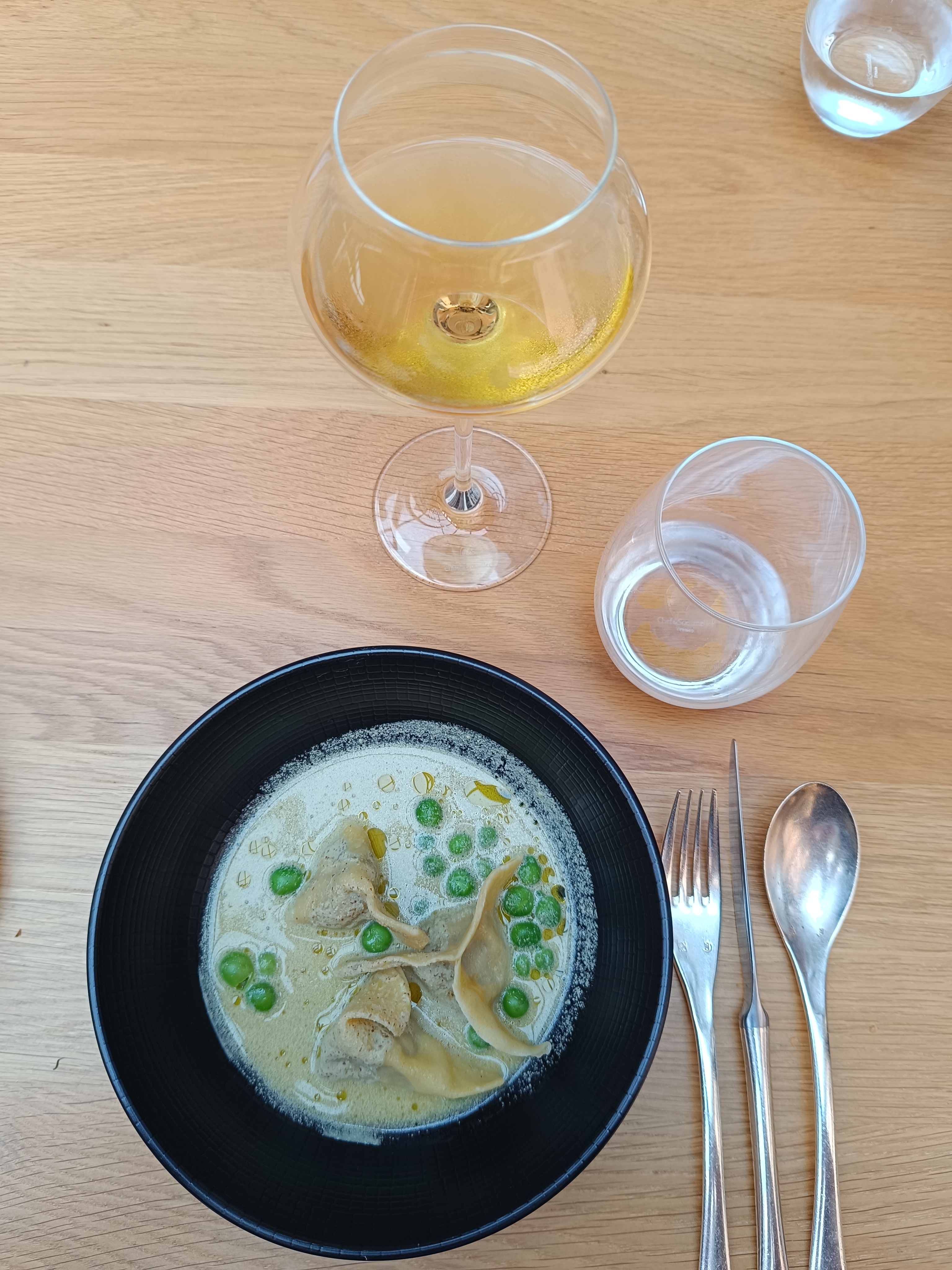 Déco très froide, pour le moins. Personnel apparemment principalement constitué d’apprentis avec leurs maladresses verbales “ça a été “ , “vous me demandez qu’il n’y ait pas d’arêtes de poisson, mais c’est comme si j’vous dis pas d’os chez l’humain”, “attention à vous”…bref, léger pour un étoilé. Nous avons pris le menu 7 plats. Je trouve risqué de mettre dans ce menu “surprise “ du ris de veau (beaucoup de gens n’aiment pas les abats) et du pigeon, très saignant en goût. Je n’ai, personnellement, pas apprécié. Le reste était correct. L’accord des vins était bien, bien que très orienté “blanc”, ce qui aurait dû être précisé à mon avis (4 blancs pour un rouge). Je ne pense pas retourner dans ce restaurant.