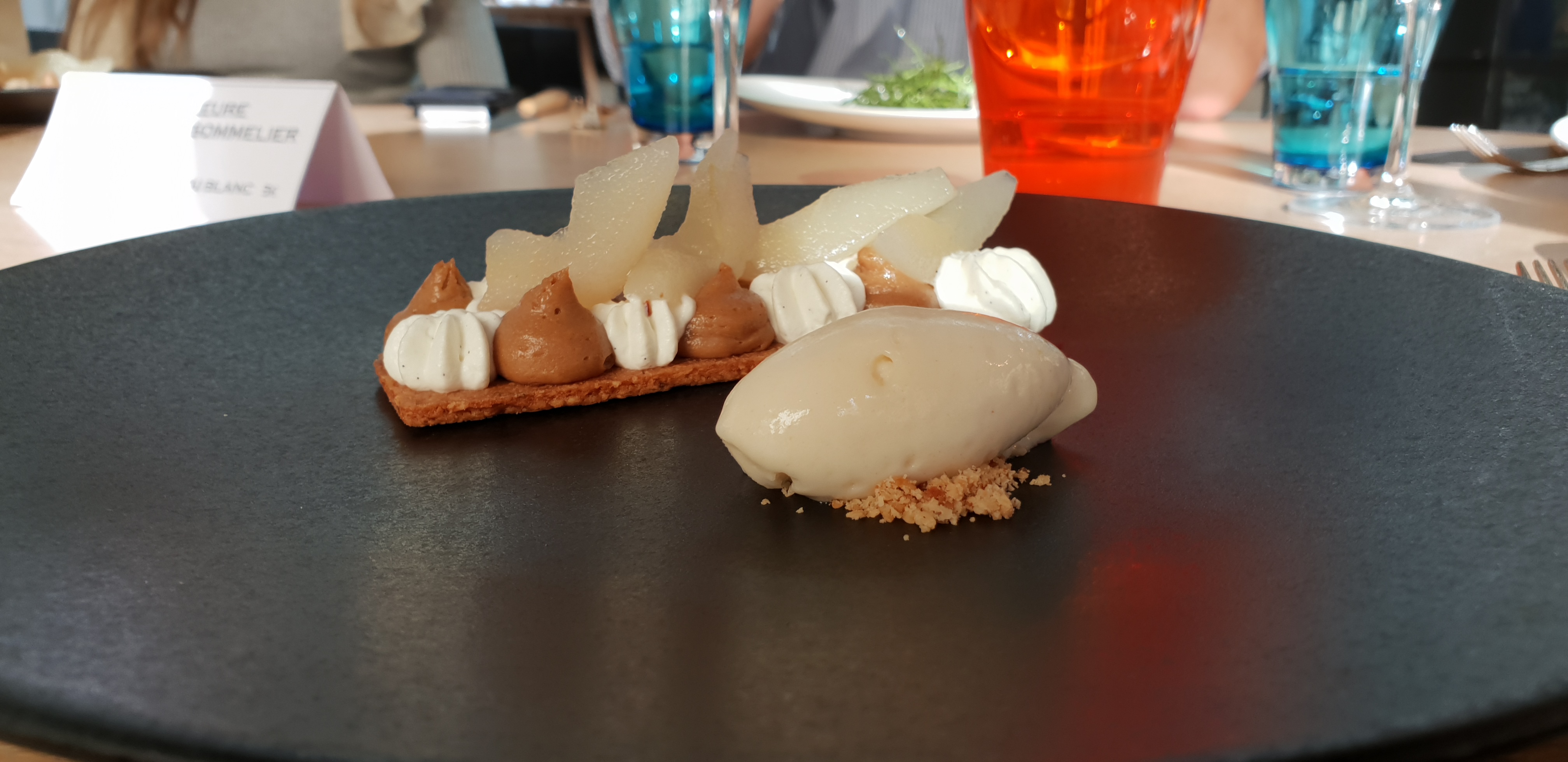 Nous n'avons pas les mots pour décrire à quel point nous avons passé un bon moment. Apprentis en restauration avec un petit salaire, nous n'avons aucun regret d'avoir mis de côté pour cette merveilleuse expérience, chaleureuse et bienveillante depuis l'appel de confirmation concernant des restrictions alimentaires jusqu'à notre départ. Beaucoup de patience concernant nos nombreuses question sur le menu, des plats aux saveurs distinguées, une présentation impeccable du contenu au contenant (quelle vaisselle magnifique !), des discussions plus qu'agréables avec tous les serveurs... Proposition originale du fromage et du pré-dessert ( Quenelle de Gorgonzola ou crêpes flambées, les deux préparés en salle ) Même si ce n'est pas pour demain, nous n'avons qu'une hâte : revenir, notamment pour le Ris de veau et les St-Jaques. Un grand merci à toute l'équipe de cuisine et de salle, particulièrement à la maître d'hôtel qui a su rapidement nous mettre à l'aise !