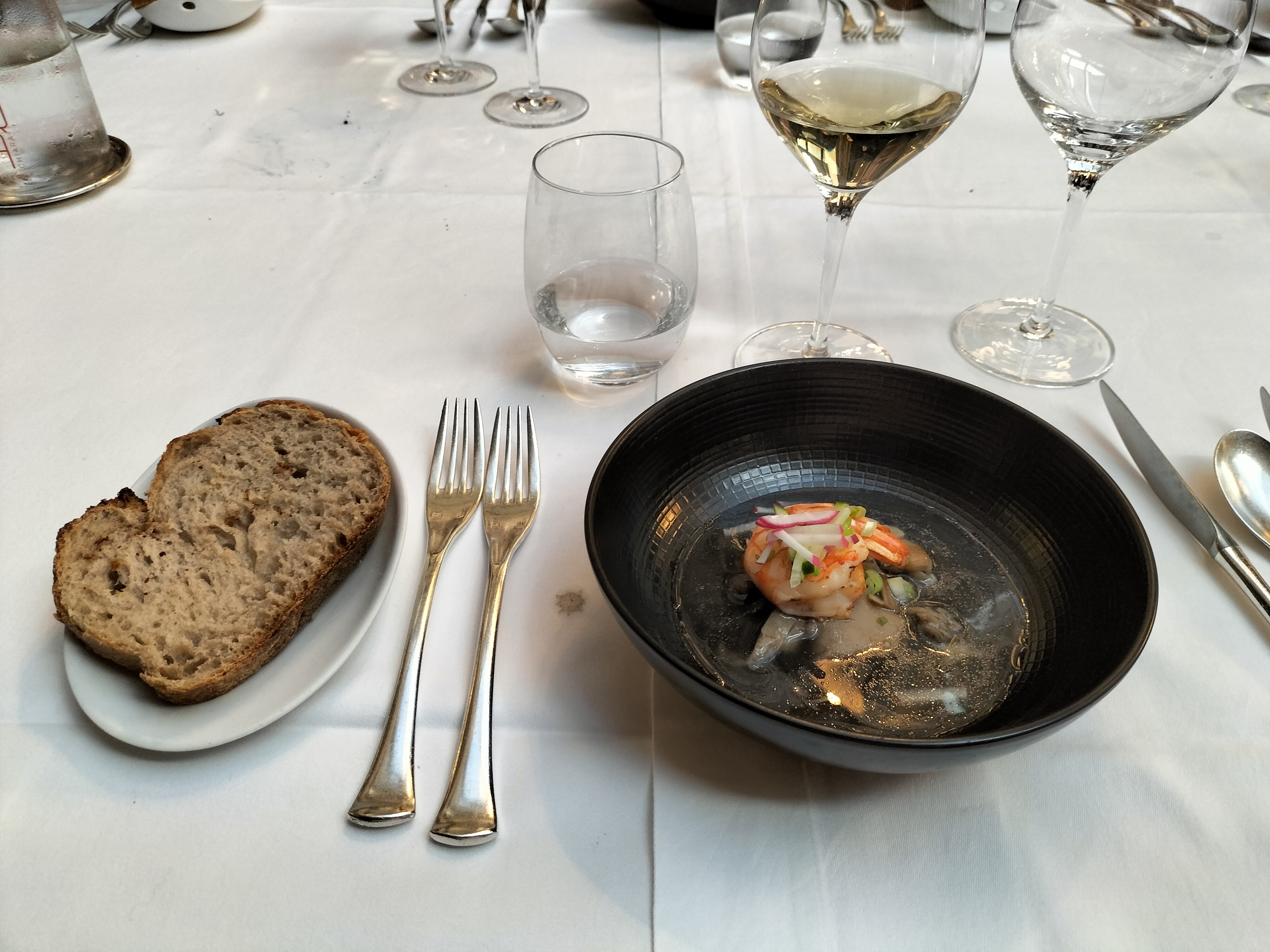 Une expérience exceptionnelle au niveau de la cuisine et de l'organisation des plats. Beaucoup de sensations gustatives - cassoulet de homard, glace au basilic et aubergine fumée au foin pour ne citer que quelques exemples ! Des choses plus conventionnelles très bien faites aussi (délicieux ceviche) ! Les accords mets et vins étaient intelligents et non conventionnels par endroits. Des tailles généreuses aussi (pour ce genre de restaurant) Seuls des points négatifs très mineurs - je ne suis pas sûr du pain ; notre place dans la salle à manger semblait un peu cachée de l'action.