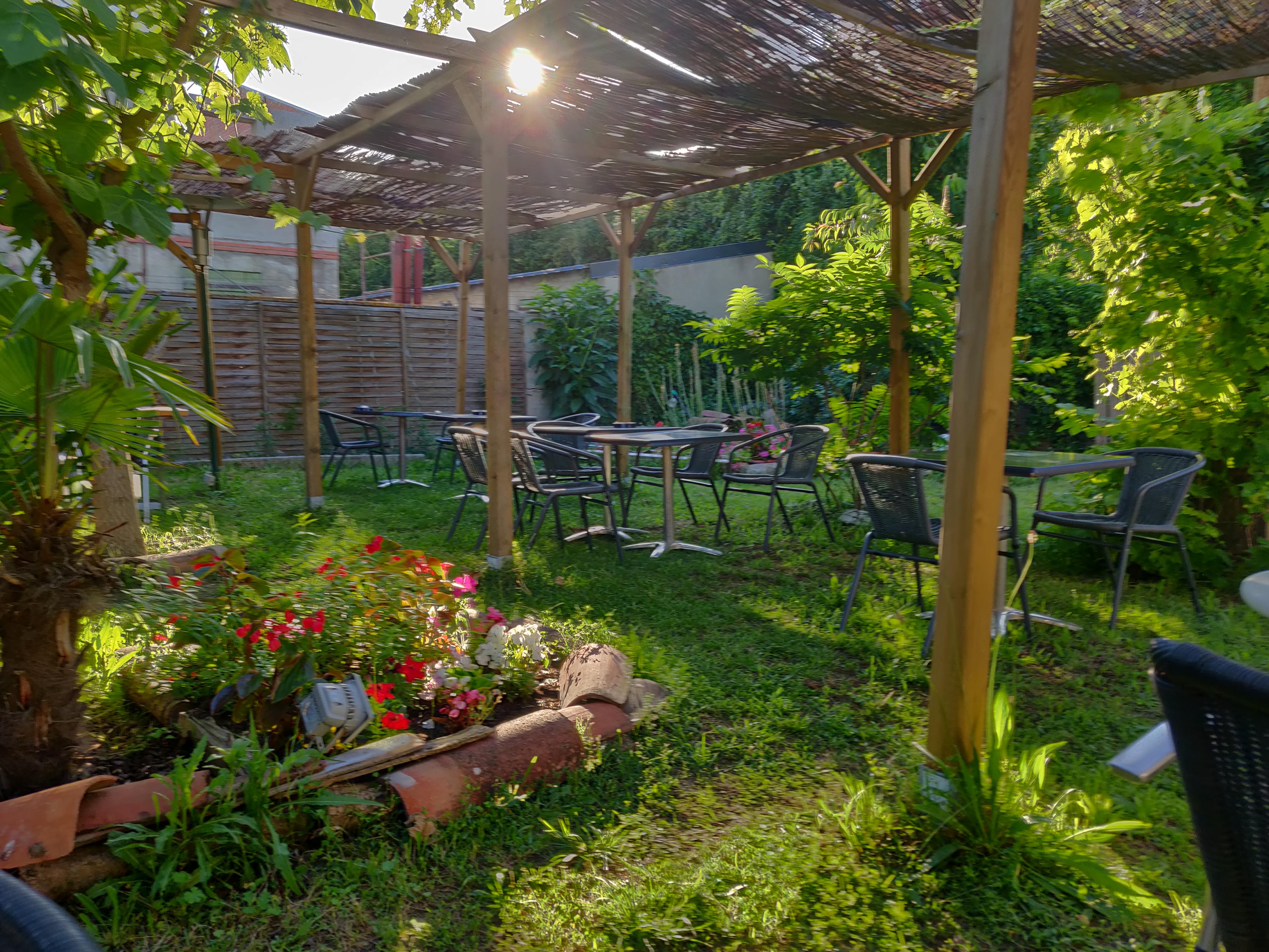 Restaurant un peu à l'écart du centre ville, avec une terrasse très jolie avec beaucoup de plante comme si nous étions dans un jardin. Le coin est très tranquille, une cuisine en extérieure, un coin bar sympathique. Mention spéciale au patron de l'établissement et son staff qui sont vraiment accueillant et qui n'hésitent pas a discuter et plaisanter avec vous si vous le désirez. La nourriture est très bonne et l'accès aux personnes à mobilité réduite est possible. Recommande totalement !