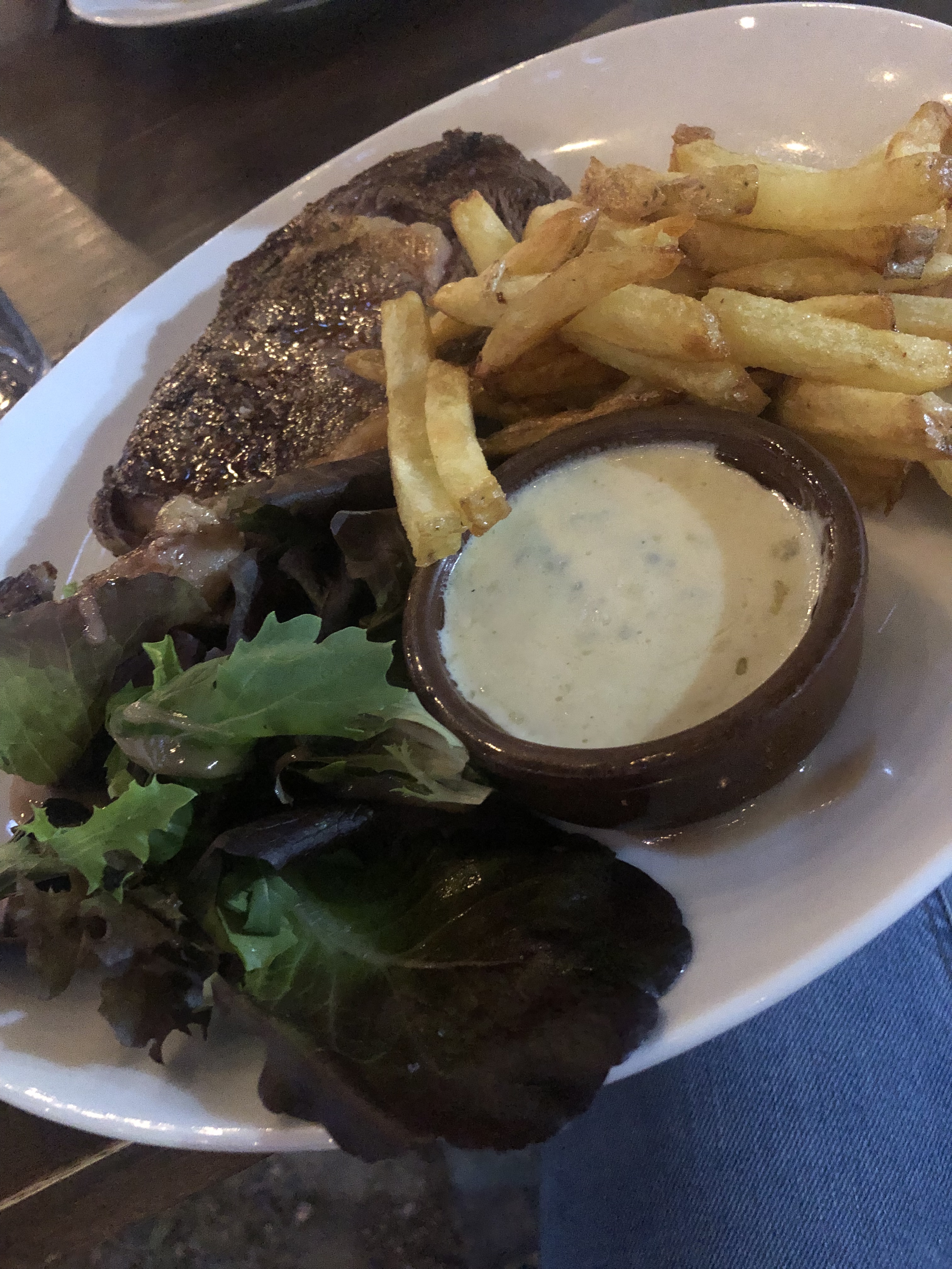 Lieux agréable et accueillant. La formule du midi, entrée + plat + dessert à 16,70€ est un super rapport qualité prix. Le velouté de butternut en entrée était excellent, la pièce du boucher, était cuite comme demandée. Le banofee en dessert était bon.