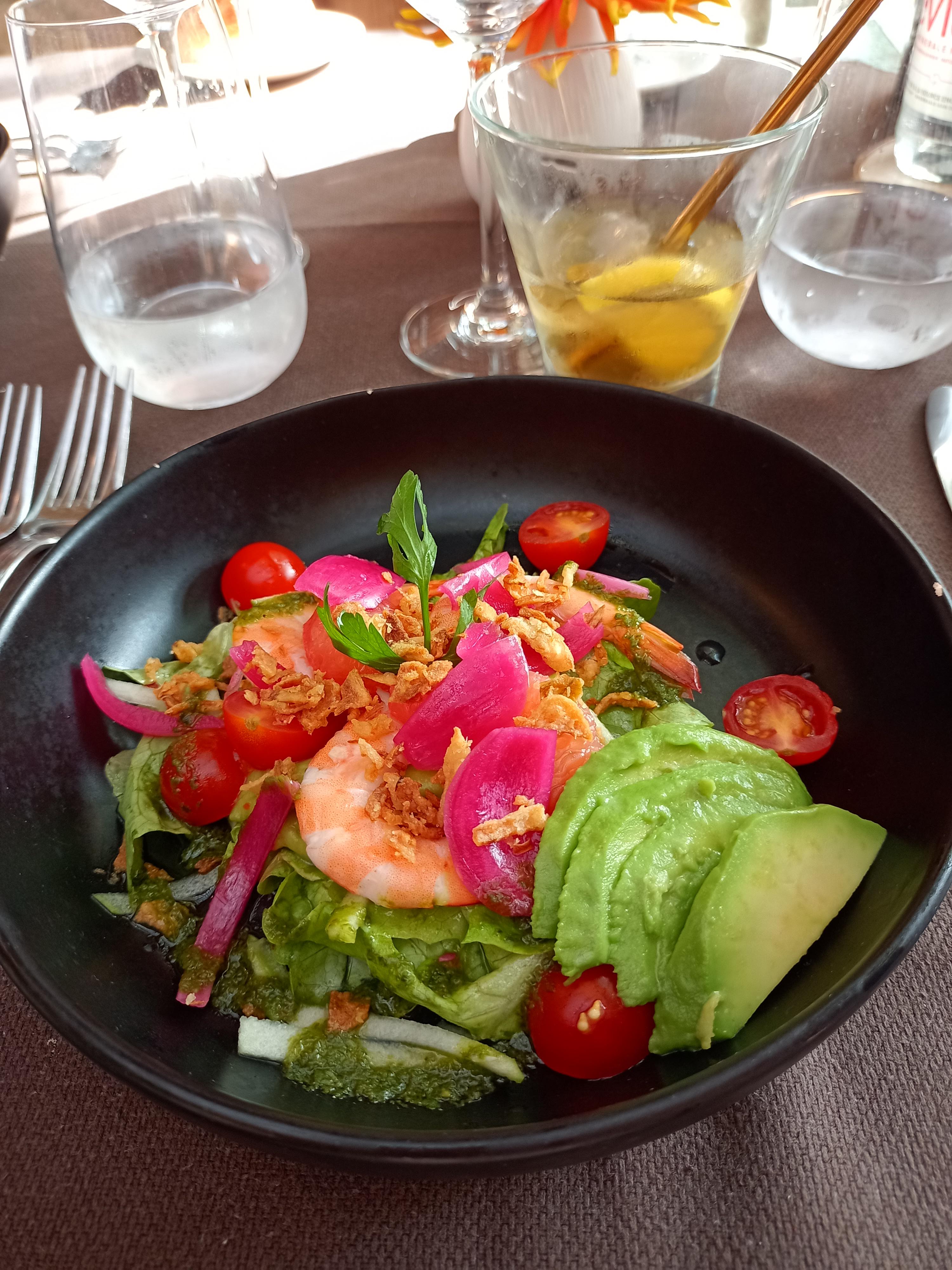 Le cadre est très agréable avec les arbres qui traverse le toit, le service est parfait, le personnel super sympathique et accueillant et les plats sont très bons et copieux, la pluma était un peu trop cuite mais c’était très bien. A refaire