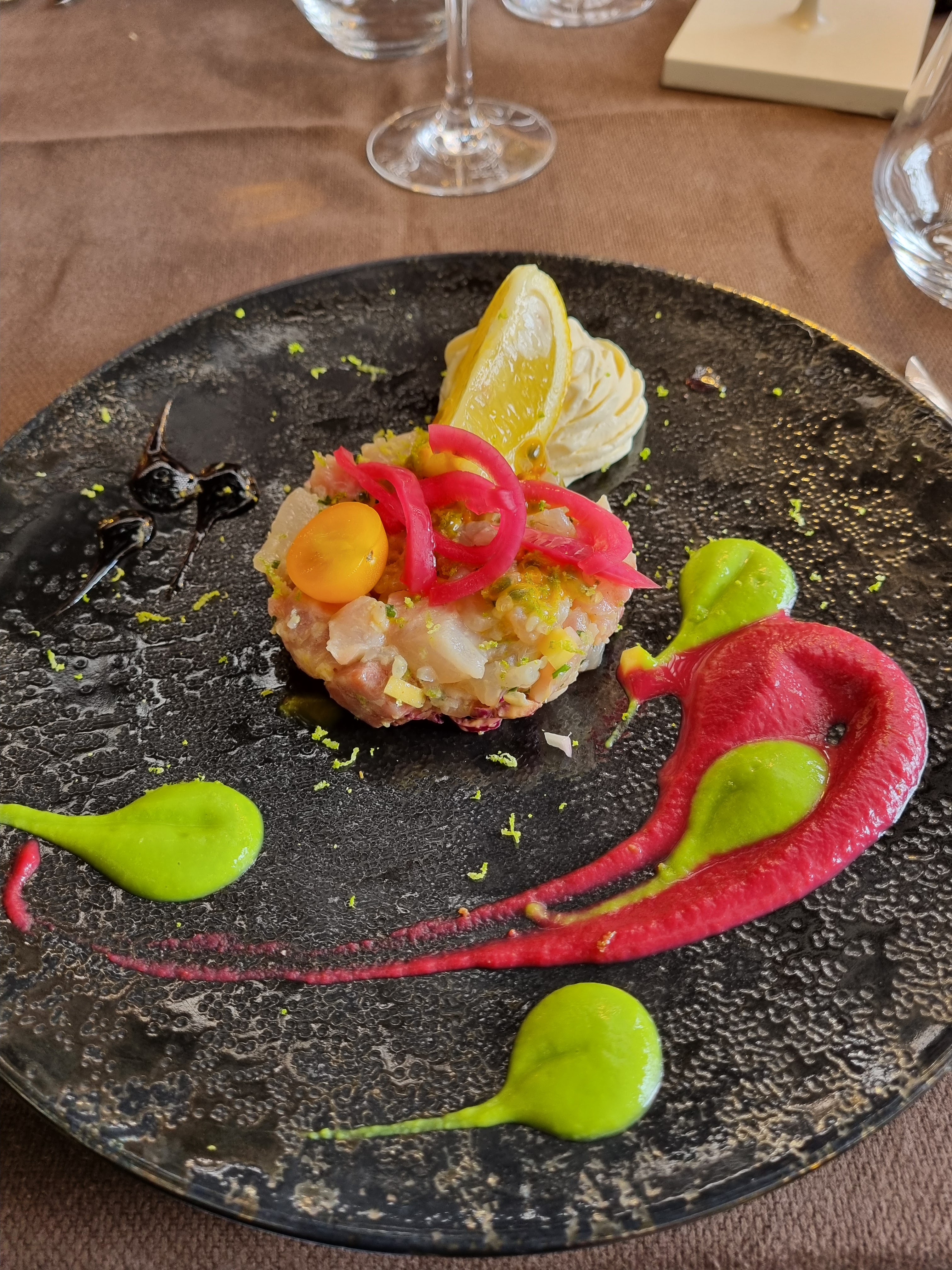 J ai été déçue par la cuisine . L entrée daurade était insipide aucun goût ! Le plat le bar grille nageait dans l huile et la purée était insipide aucun goût. Et le comble le dessert un craquelin aux fruits sans mousse au fond qu avec des fruits coupés menus n'étaient pas bons ! La cuisine doit être revisitée par un chef gastronomique car 48€ pour des plats pas bons c est cher très cher payé.