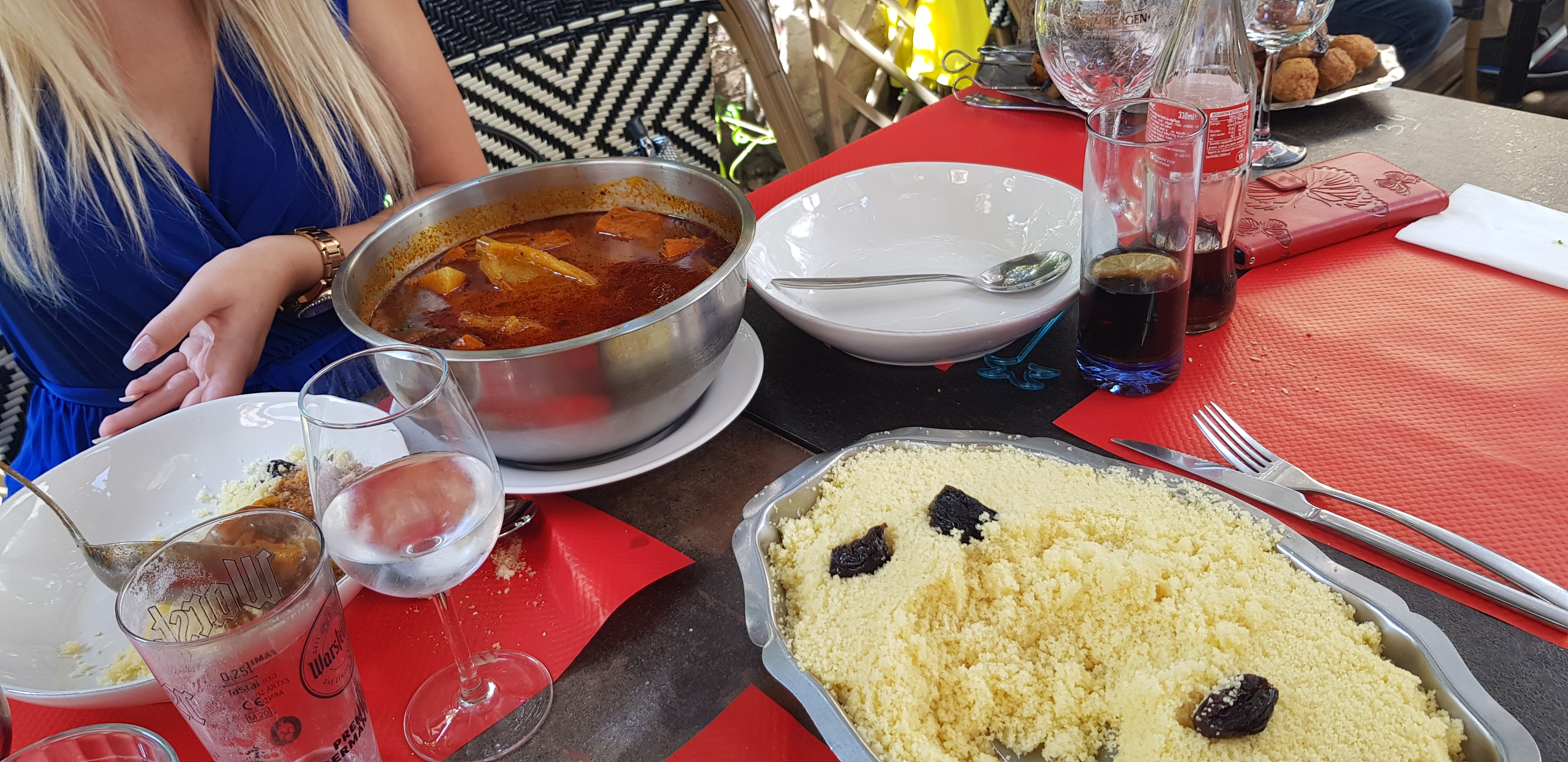 Super terrasse. Accueil chaleureux et couscous gourmand.