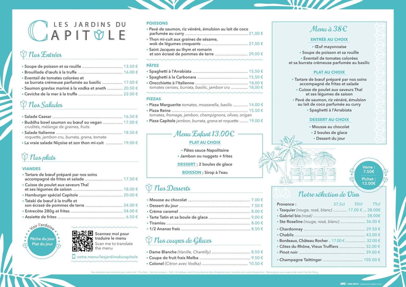 Si vous êtes touristes estival et ne deviez choisir qu'un seul restaurant à Nice, choisissez les jardins du Capitole. Je l'ai découvert cet été pendant mes vacances avec ma compagne et nous y avons mangé tous les jours jusqu'à épuiser tous les plats de la carte. Cuisine au top, cuissons maîtrisées, qualité des légumes et des viandes, service de qualité et professionnalisme des serveurs. Le bar également est de qualité. Je ne dirai pas que c'est cher ou bon marché, c'est un bon rapport qualité prix avec une haute qualité. Vous pourrez aisement faire des photos de vos plats. Le confort et la deco so t un plus. Situé à pleine vie de la mer, en plein centre, en été les brumisateurs vous font encore plus apprécier le lieu. Je remercie le patron, que je n'ai jamais vu d'avoir sû tenir et entretenir un tel endroit sans tomber dans le piège de l'appat du gain touristique compte tenu du positionnement. Ce sont des endroits comme celà qui font que je suis fier du patrimoine culturel de Nice. Nous y sommes retournés en décembre pour y manger des plats precis et non parce que c'était près de la mer. Je n'ai pas parlé des desserts mais.... un must aussi. Une petite carte mais maîtrisée. Bonne continuation et à bientôt !