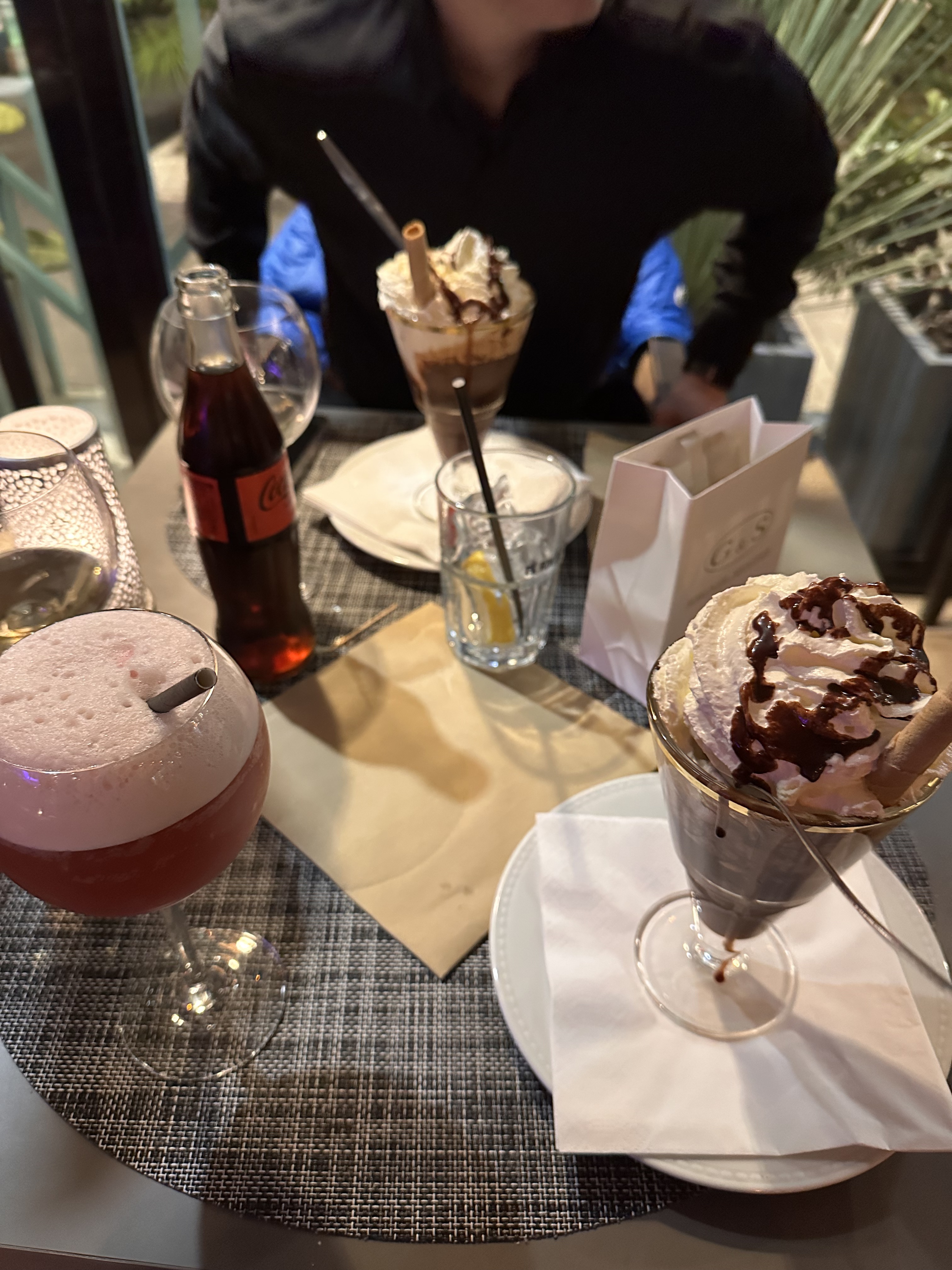 Très bien placé sur la promenade des anglais .la petite serveuse très serviable et attentive à ses clients, part contre la responsable blonde très distante , j avais pas terminé ma commande qu elle était déjà partie j ai ressenti un mépris de sa part.aucune considération pour ses clients.domage que des établissements aussi beaux soit dans les mains de personnes aussi médiocre pour le commerce