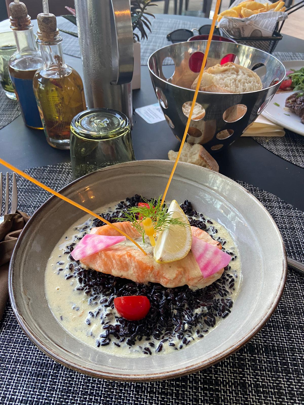 Après avoir vu la photo de ce plat le pavé de saumon riz vénéré émulsion au lait de coco parfumé au curry mon mari et moi l'avons commandé. Ce fût une très grosse déception car l'assiette n'avait aucun goût ! La sauce qui fait tout le plat était aussi fade que de l'eau plate, le saumon n'avait aucun assaisonnement même après avoir ajouté à plusieurs reprises du sel, ça ne changeait rien du tout malheureusement. Nos assiettes ont été à peine touchées donc payé 51€ (avec boisson) à eu un goût amer, enfin du goût... Nous n'avons pas l'habitude de poster des avis négatifs mais lorsque mon mari a été payé à la caisse (à l'abris des autres clients afin de donner son avis) le serveur a été très désagréable et très susceptible en rétorquant que nous n'avions pas de goût car le restaurant vend énormément de plats de saumon chaque jour... Très dommage en tout cas, car l'assiette était belle et la localisation aussi... Je ne recommande pas du tout !