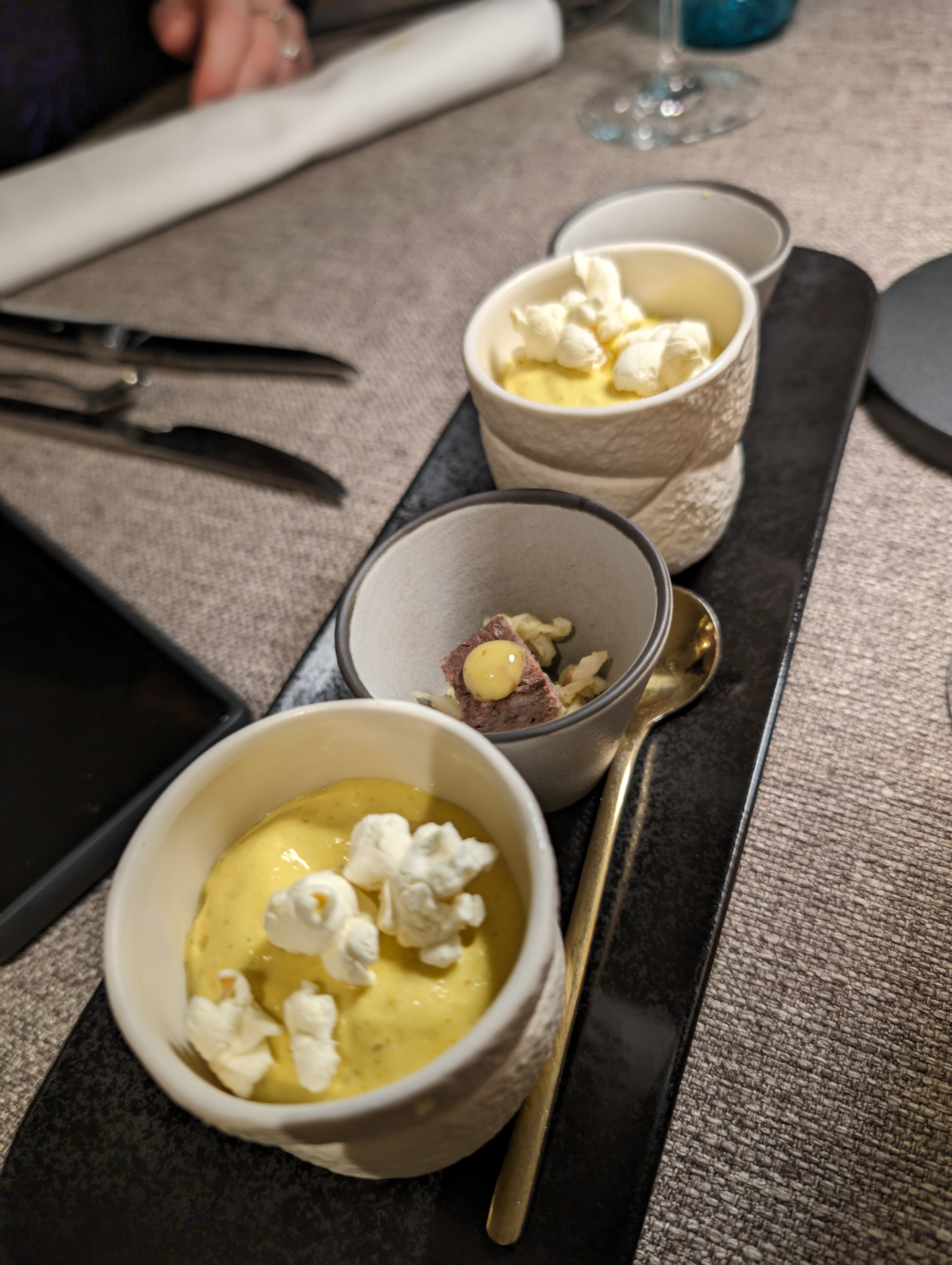 Très bonne expérience à ce restaurant. Le service était très fluide, les deux personnes qui se sont occupées de la table très aimables! Chaque plat était vraiment très réussi, gourmands mais très bien maîtrisés à la fois, je recommande vivement !