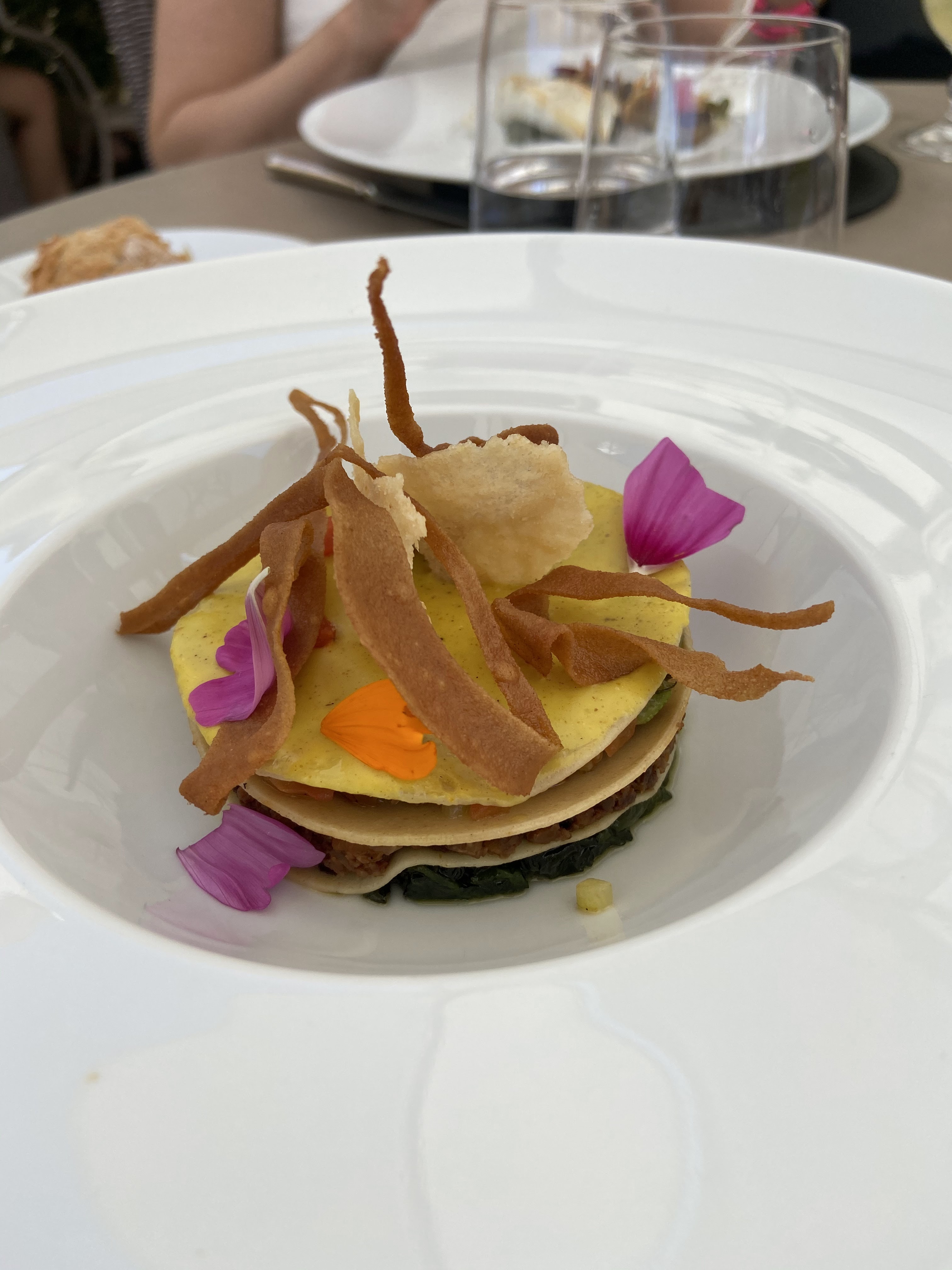 Avis très mitigé. Cuisine élaborée certes mais pour qui recherche des mélanges de saveurs particuliers (exemple le dessert à base d’artichaut). Petites portions très peu nourrissantes. Service un peu chichiteux (la main dans le dos) mais avec des erreurs flagrantes (exemple: les hommes servis avant les femmes ou le pain déposé à l’envers dans l’assiette). Bref, une impression un peu pompeuse dans un cadre agréable mais sans plus et avec une exécution pas à la hauteur des ambitions.