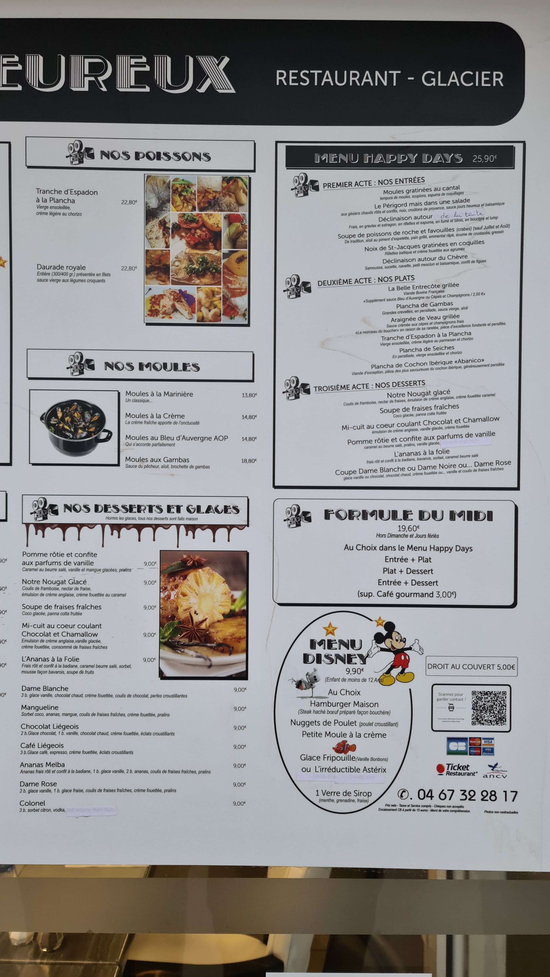 Les jours heureux un très bon restaurant un patron très sympathique. Une équipe dynamique jeune et réactive. ça tourne au fourneaux😃😃 on est super bien servi les repas sont succulents... les moules gratinées au Cantal trop bonnes.. hors saison il vaut mieux réserver . Merci à toute l équipe pour ce délicieux moment 😃😃