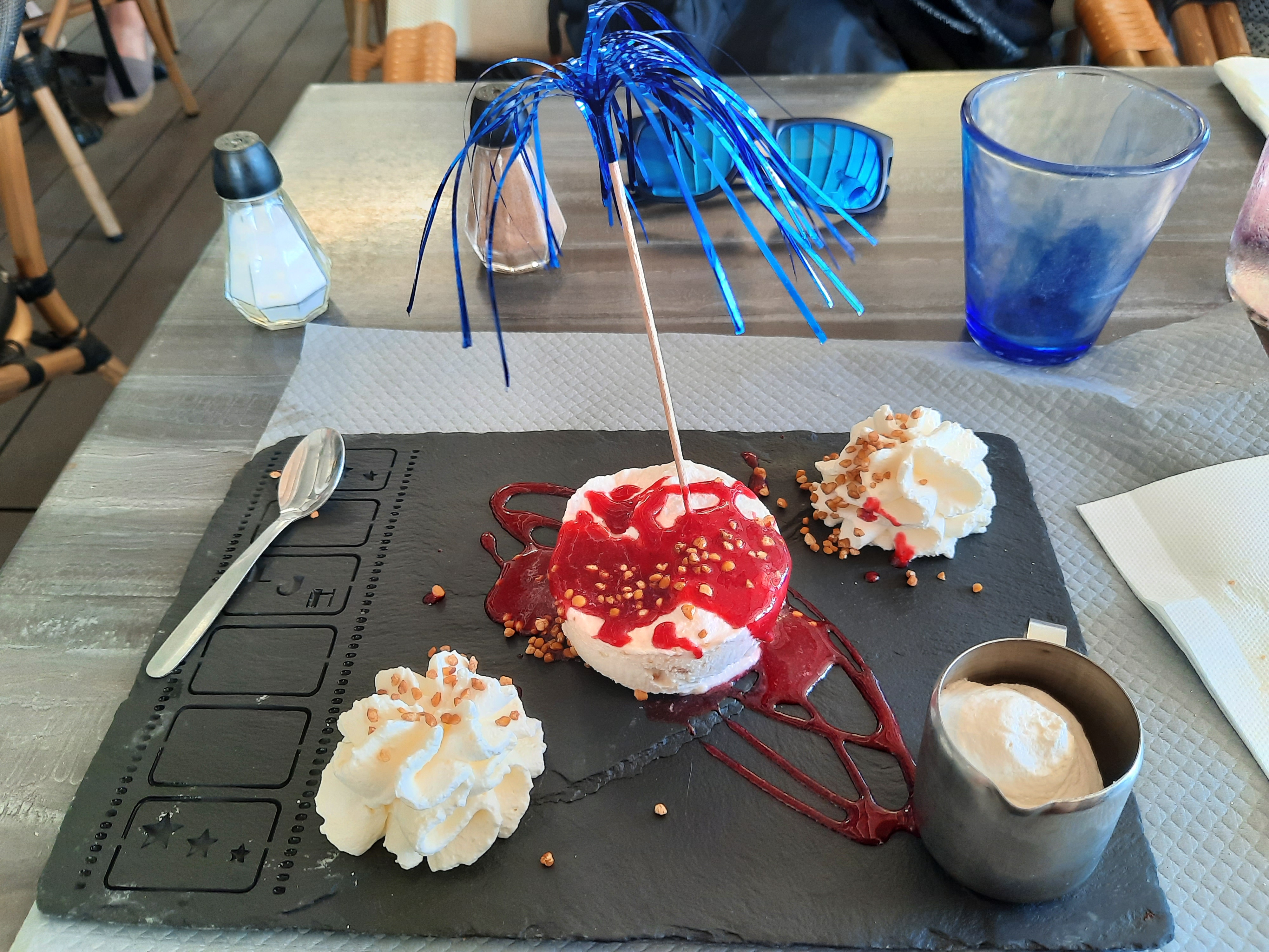 Super repas pour les 40 ans de mariages de mes parents. Menu entrée plat dessert . Service rapide, personnel très agréable. Vu sur la mer. Il y en a pour les goûts, à prix abordable. La vaisselle pour la présentation des plats et des boissons est géniale, chapeaux aux personnels qui sont à la plonge pour nettoyer tous ça. Pas de photos des cocktails pour laisser la surprise (perso gros coup de coeur).