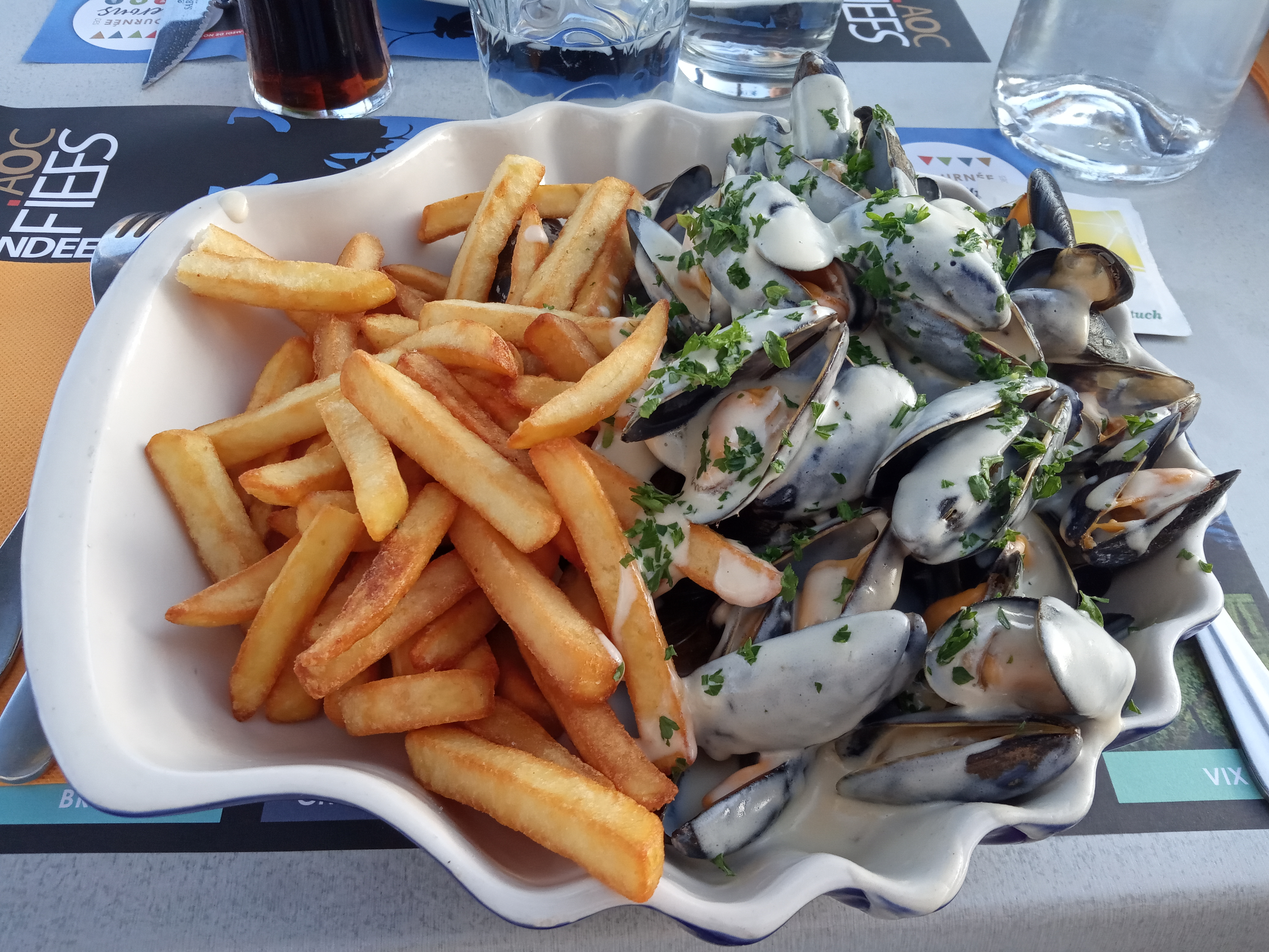 Choisi pour y déguster des moules, le choix s'est avéré judicieux. Réservation faite (très conseillée), nous sommes arrivés les premiers dans ce restaurant qui possède une belle petite terrasse au calme (quand il n'y a pas de fêtes dans la salle voisine 😉). Le service, proposé par deux serveuses très sympathiques et souriantes, était à la hauteur de la qualité des plats. Les moules marinières étaient magnifiques dans leur plat : une belle couleur orangée, ouvertes comme il faut pour être dégustées sans effort, cuites sans excès pour préserver leur goût et leur texture, elles étaient pratiquement divines. C'est un des plats que je mange le plus en vacances, mais j'ai rarement eu cette qualité, pour un prix tout à fait raisonnable. Bravo.