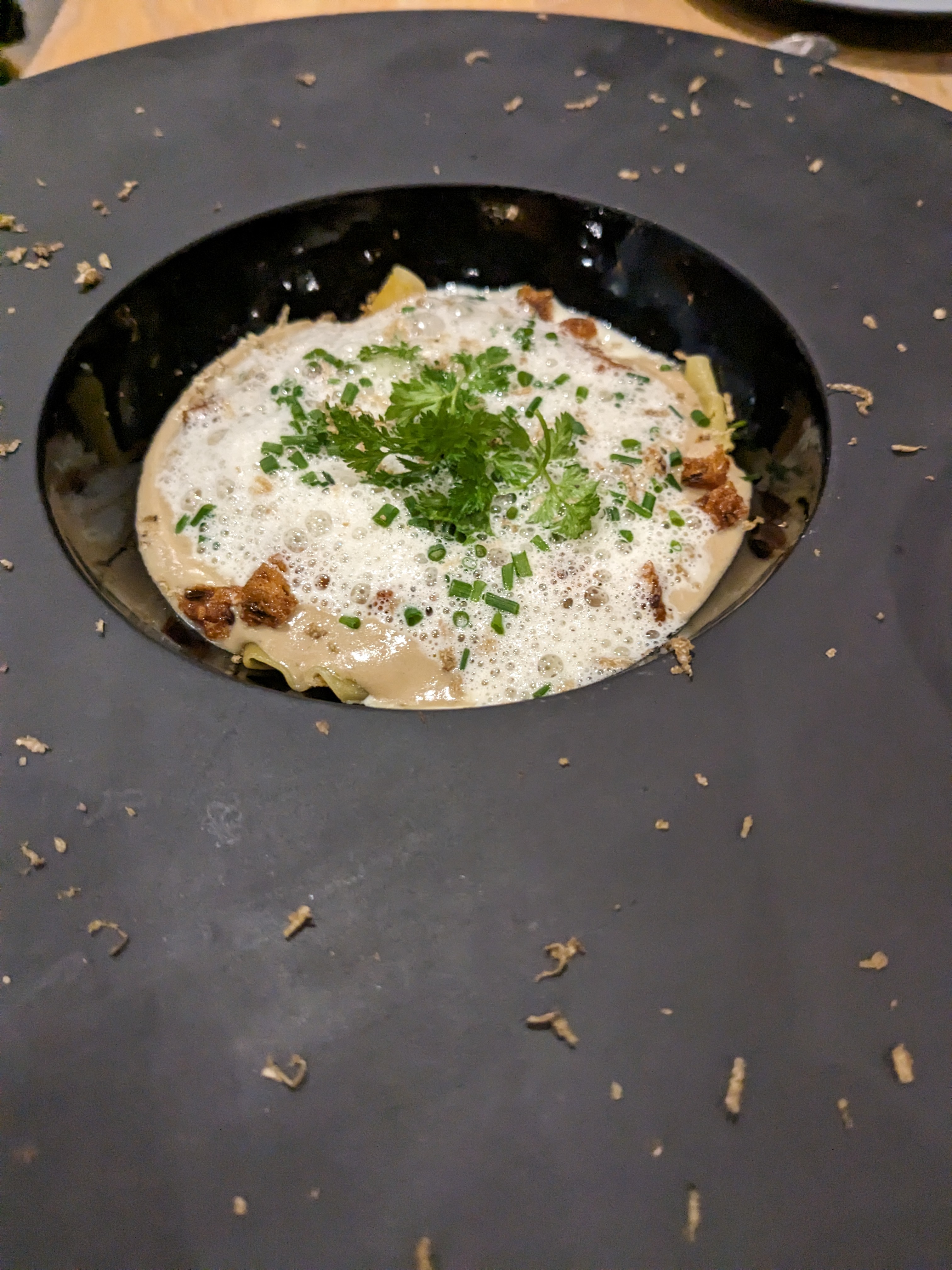 Repas et service merveilleux. Ma femme et moi avons préparé le menu de dégustation et avons mangé, cours après cours, des plats fabuleux. Notre seul reproche, c'est qu'il y avait probablement trop de nourriture. Ce fut un dîner mémorable !