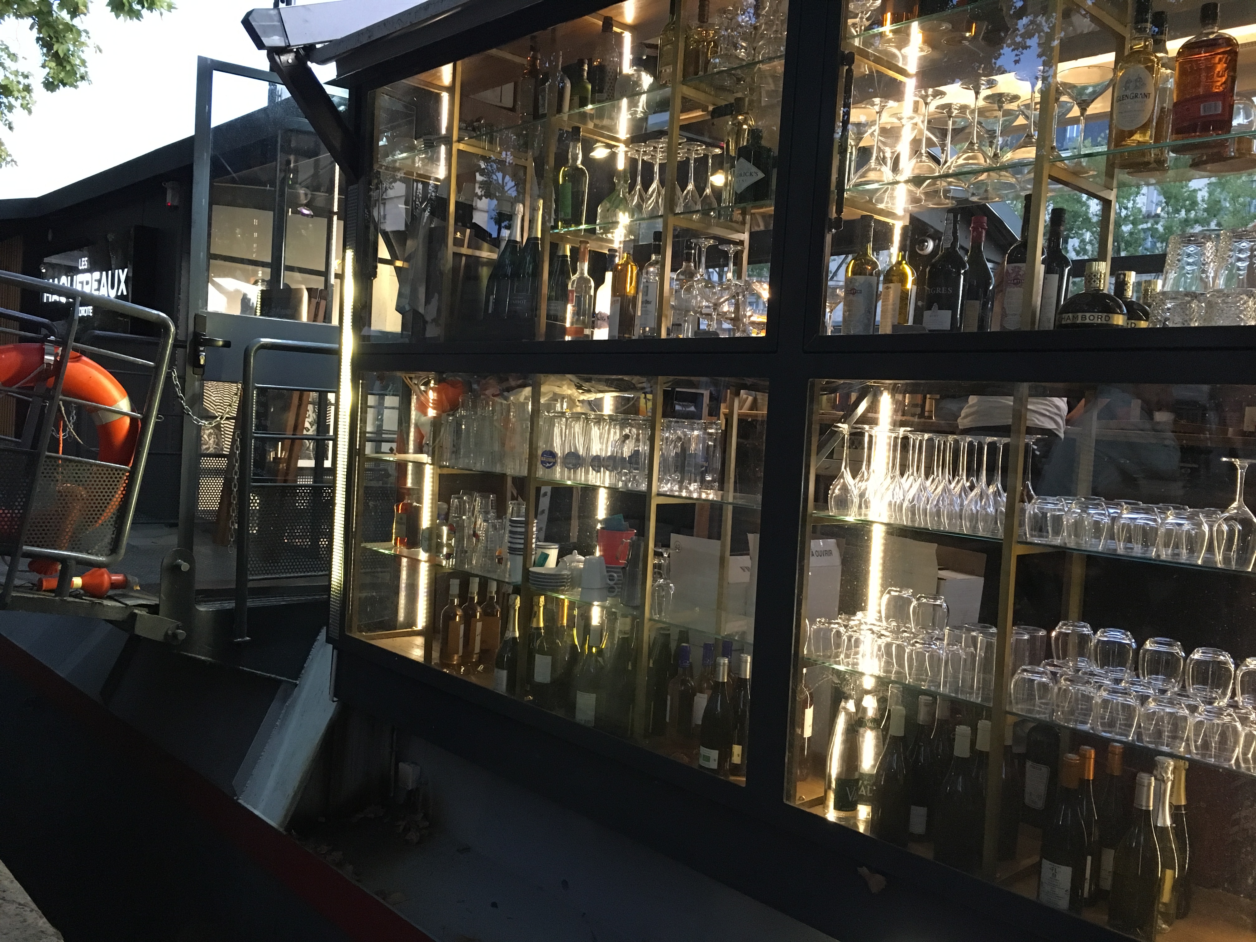 Terrasse en bord de Seine. Beaucoup de monde forcément cet été, un peu cher (cela dépend peut-être des boissons), un peu bourgeois (bizarrement plus que la péniche Marcounet qui est juste à côté), mais on est à Paris, en terrasse agréable, sans voiture à 2 mètres !