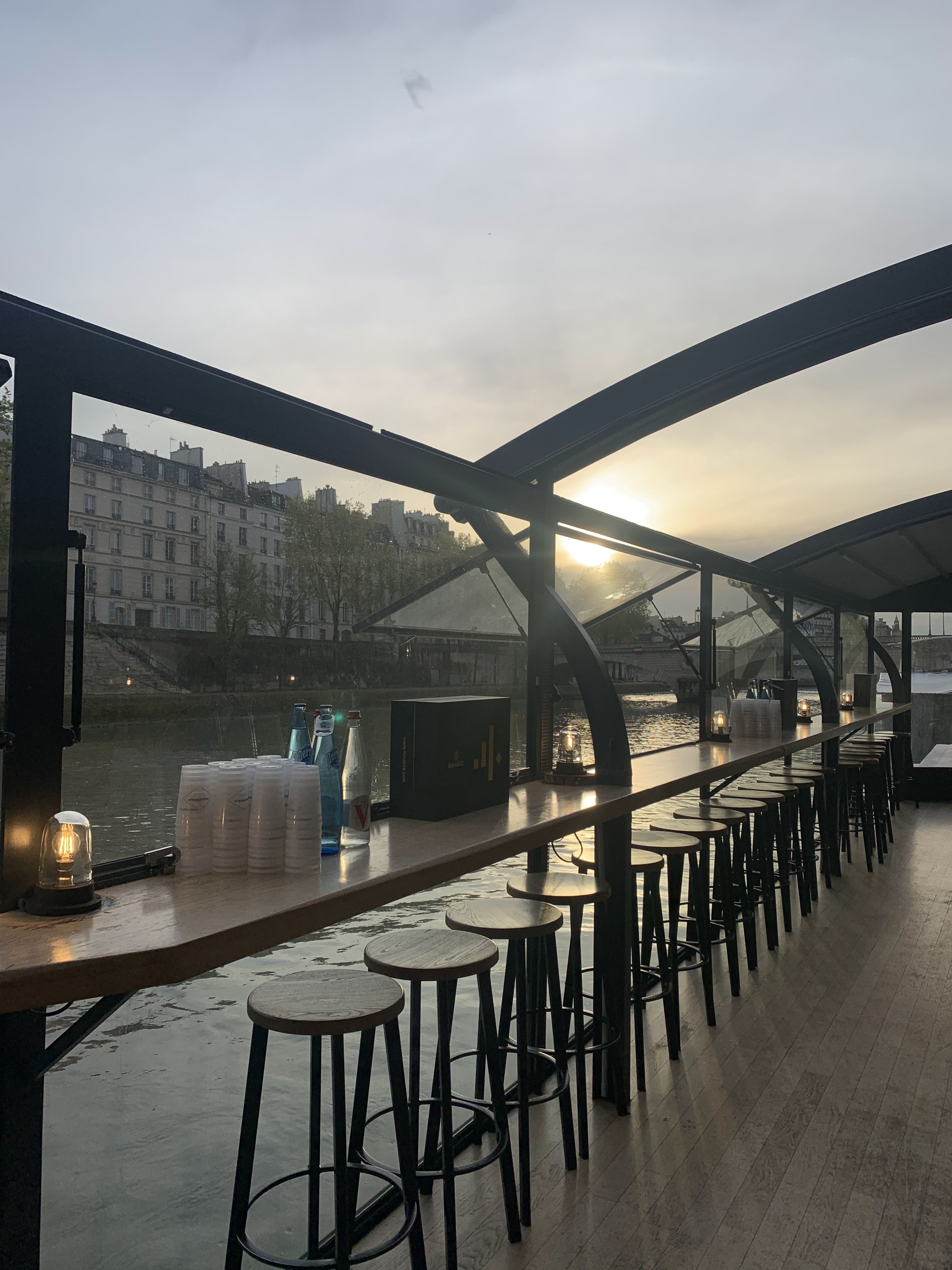 Mon spot préféré pour un apéro entre potes à Paris, du rosé bien frais avec une excellente Burrata fondante et surtout un cadre incroyable sur les berges de Seine.