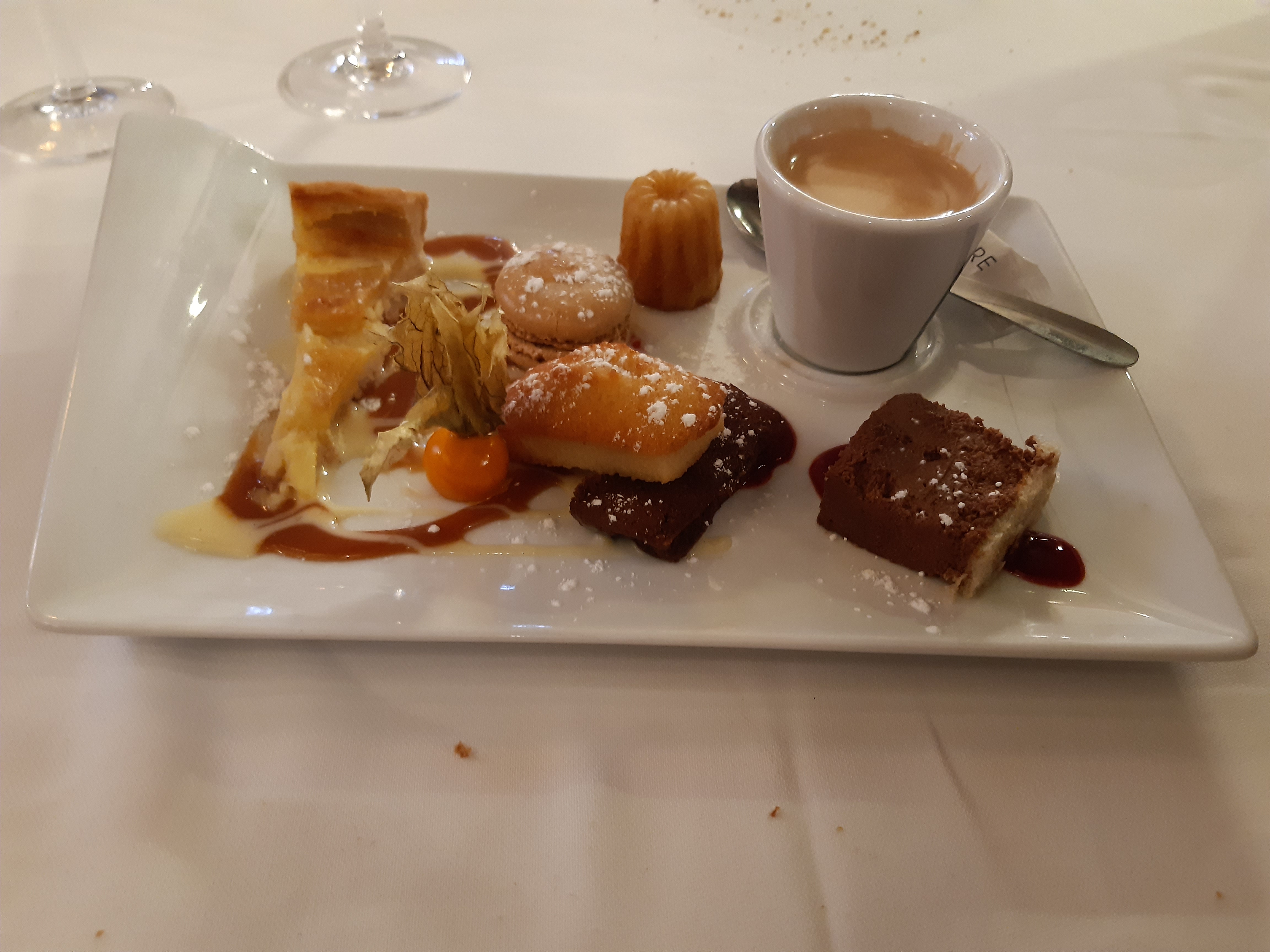 Plats bons néanmoins serveur un peu non chaland. Nous avions pris un menu avec café gourmand, prix vraiment excessif pour la qualité de ce dessert(11,50€ à la carte). Un peu déçu.