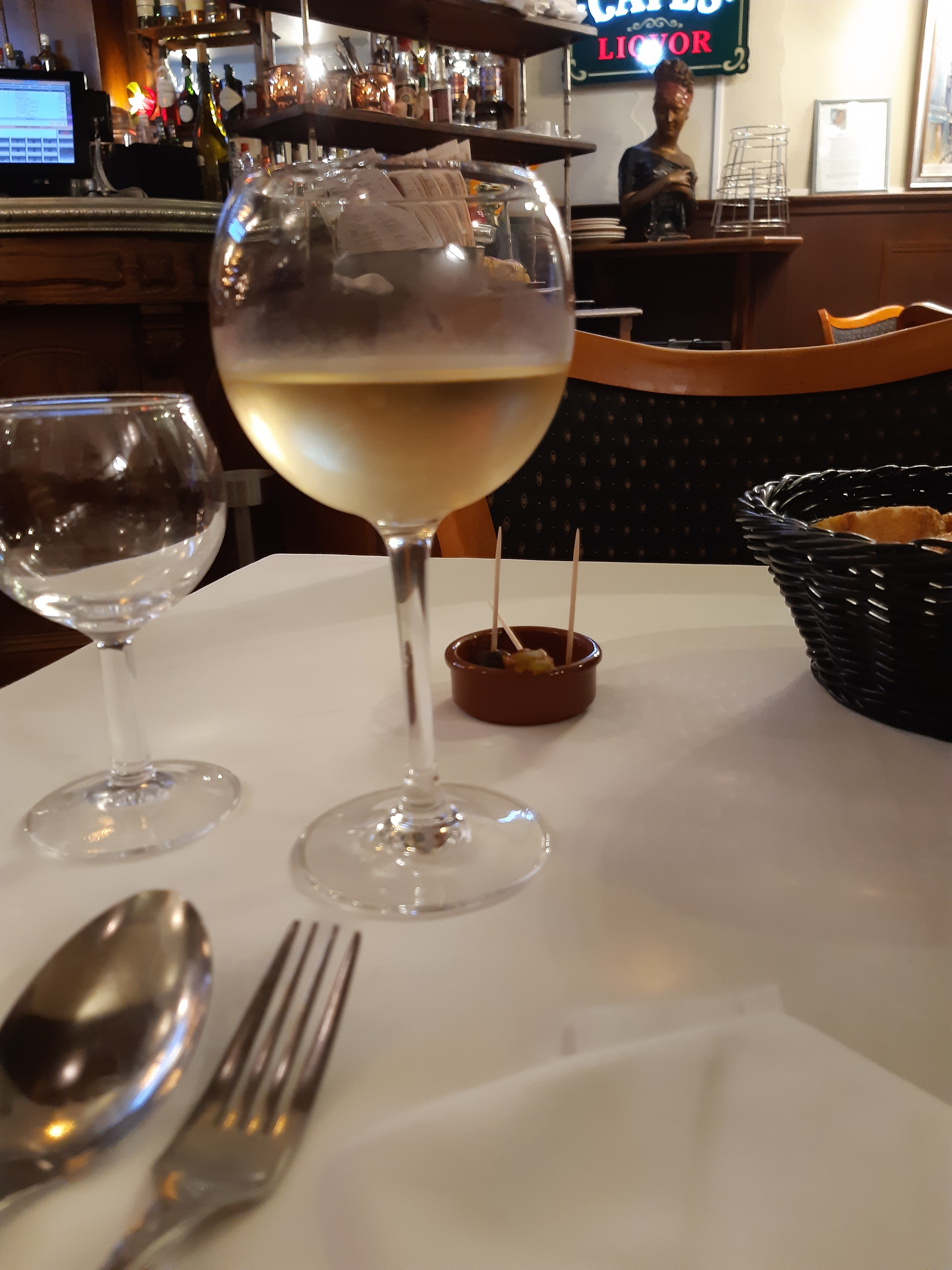 Après avoir pris un bain de foule à l’Armada,il nous fallait amener nos amis de Montélimar dans le centre historique de cette belle ville. La façade typique de ce restaurant nous a conquis contrairement à la terrasse éloignée où les tables étaient boiteuse sur les pavés... on nous a alors proposé cette table ronde pour 4 située au pied du comptoir à l’entrée, géniale avec une super vue sur la place. Le personnel très sympathique nous a mis dans l’ambiance bistrot resto, choix des plats ( je recommande le carpaccio !) , de bons vins ,un super décor pour 160€ à 4. Repartis satisfaits poursuivre notre balade dans ce centre rouennais !!