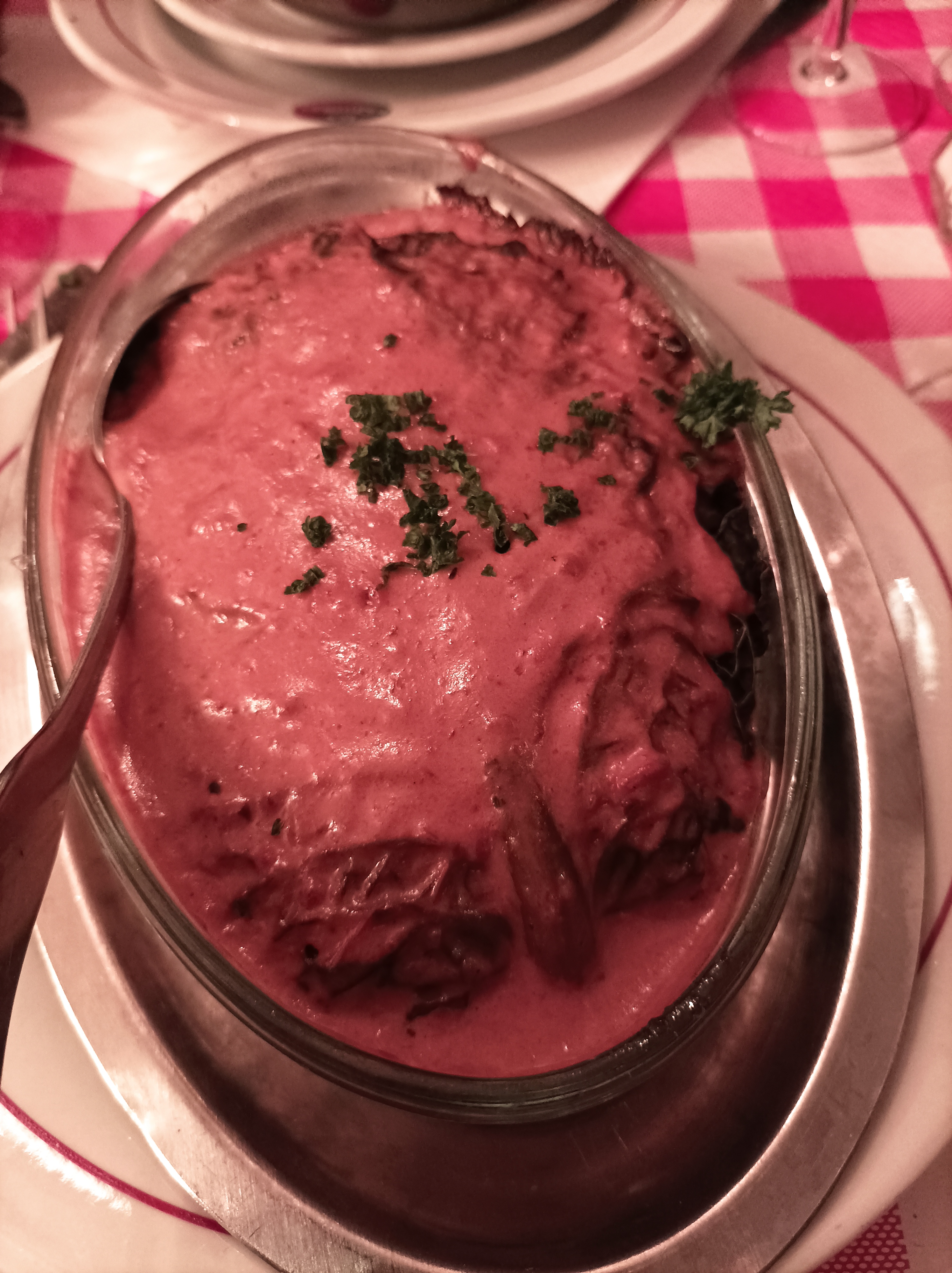 Tout est fantastique 👍 Bravo ! Juste un mot sur votre sauce (rognon, chou farci, …) beaucoup plus épaisse que d’habitude. On n’en sent pas le goût et elle gagnerait à être plus liquide et plus proche d’un jus pour être moins fade. Avis partagé par toute notre table. À revoir pour la prochaine fois 😜