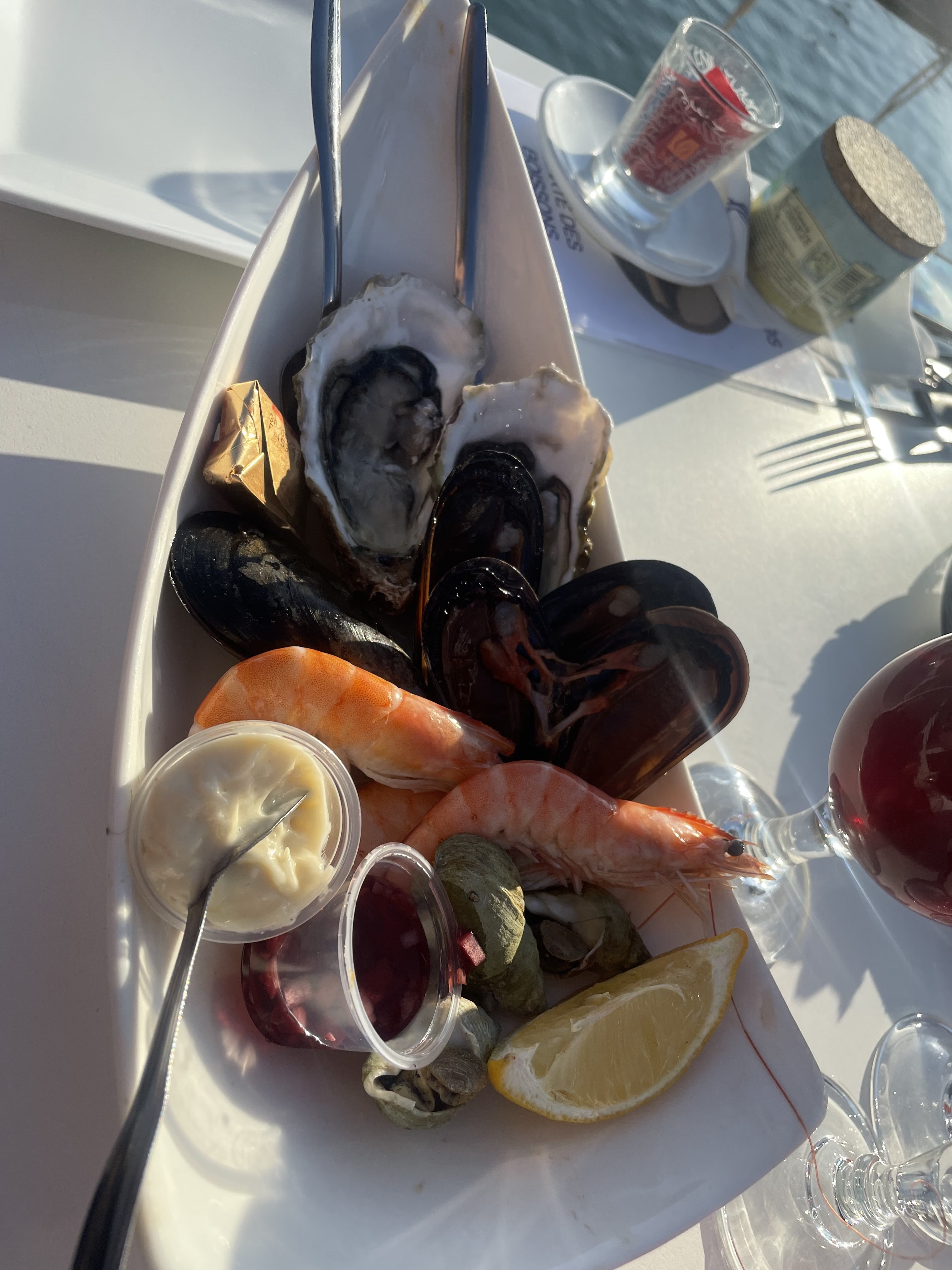 Nous avons passé un très bon moment avec une petite table à l'ombre au bords de l'eau vue bateaux au calme ! Très bien reçu et bien servi pour des moules frites en compagnie des mouettes 👍🏼
