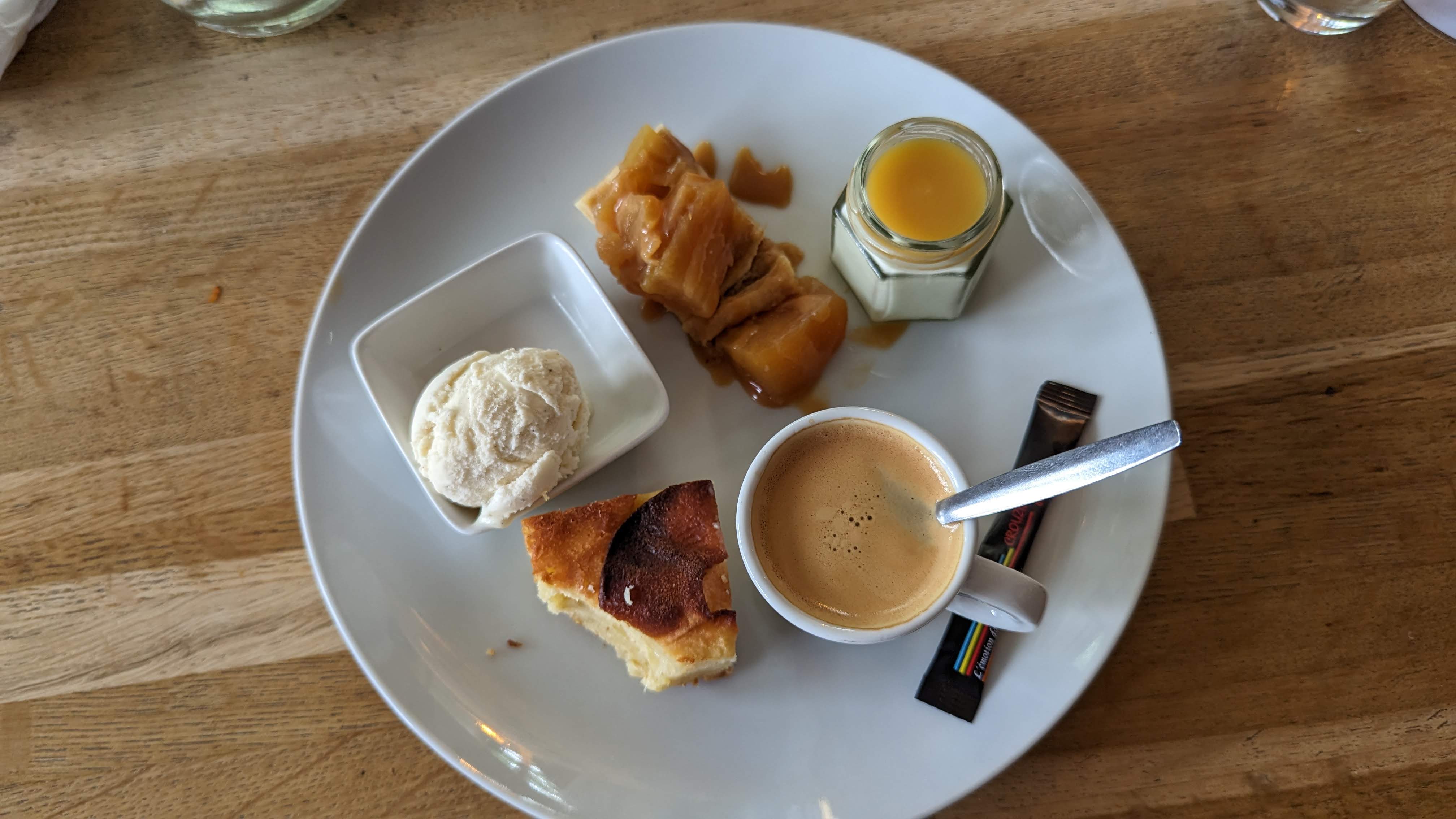 Salle bien décorée Personnel sympa J’enlève une étoile car le café gourmand pas top, la tarte tatin avait un goût de réfrigérateur :-/